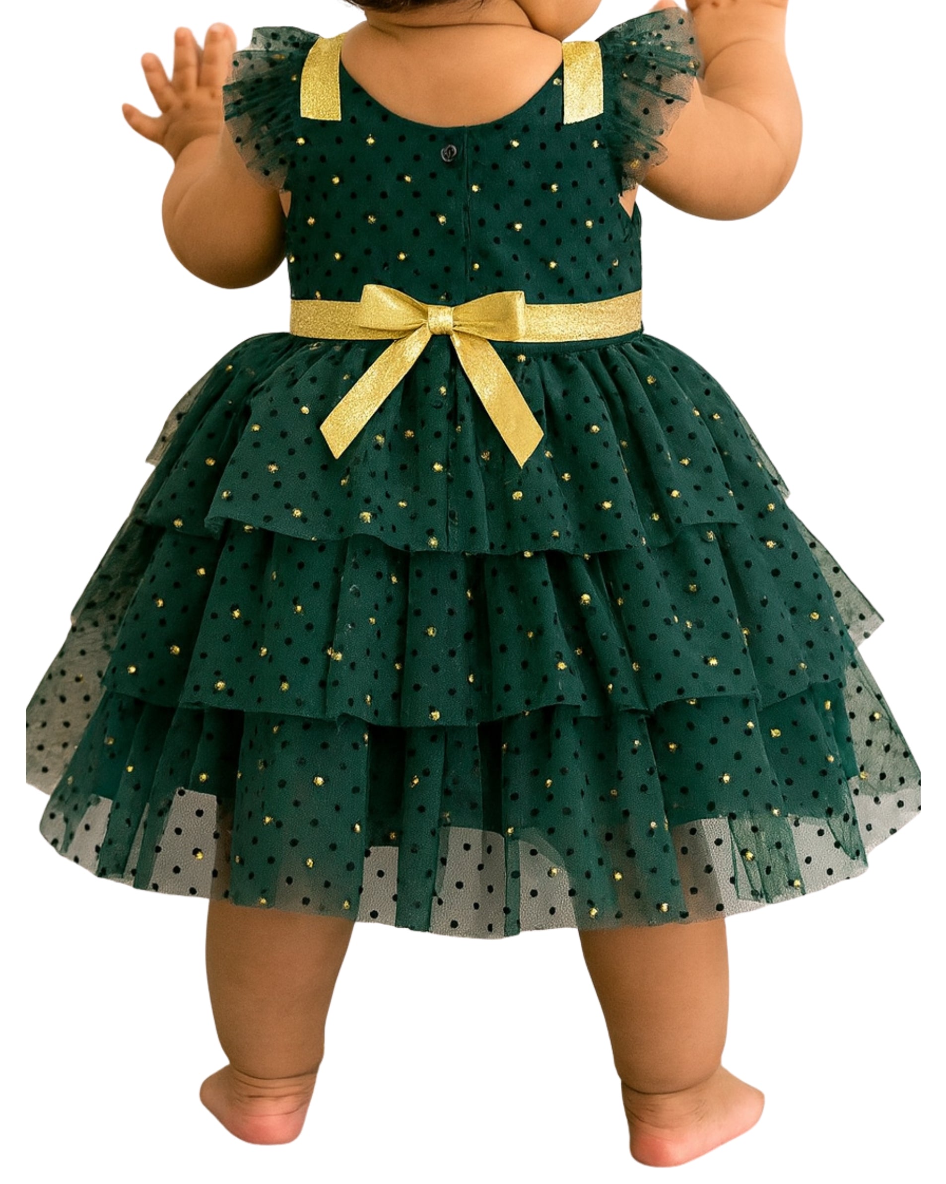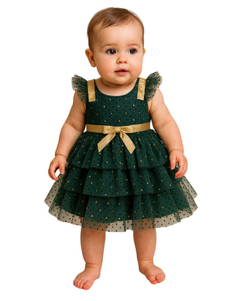 BLUEBERI BOULEVARD Baby Girl Lace Layers Holiday Green Dress