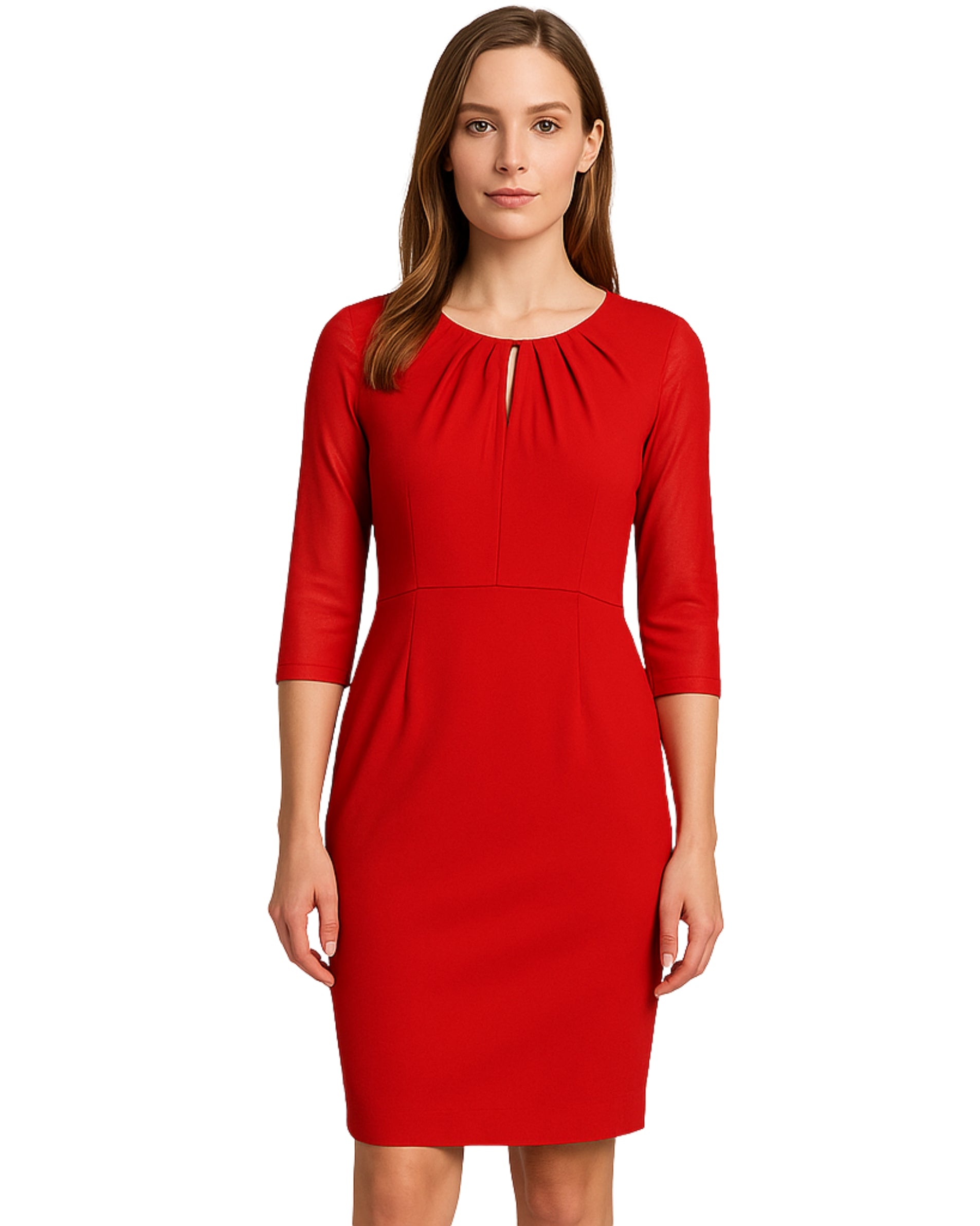 Women, Long Sleeve, Crew Neck, Back Zipper Closure, Fit, Chiffon, Calssy Chick, Midi Dress
