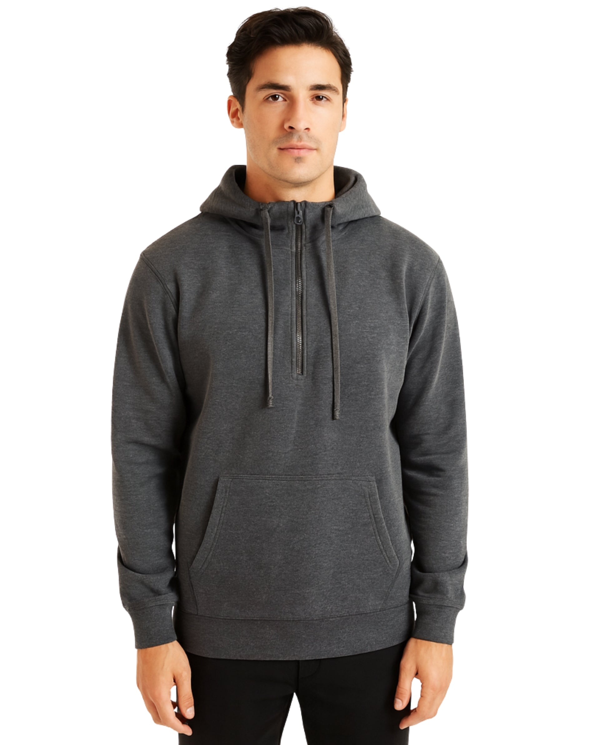Men, Long Sleeve, Hooded, Half Zipper Closure, Inner Fleece, Warm, Casual & Stylish, 60% Cotton, 40% Polyester