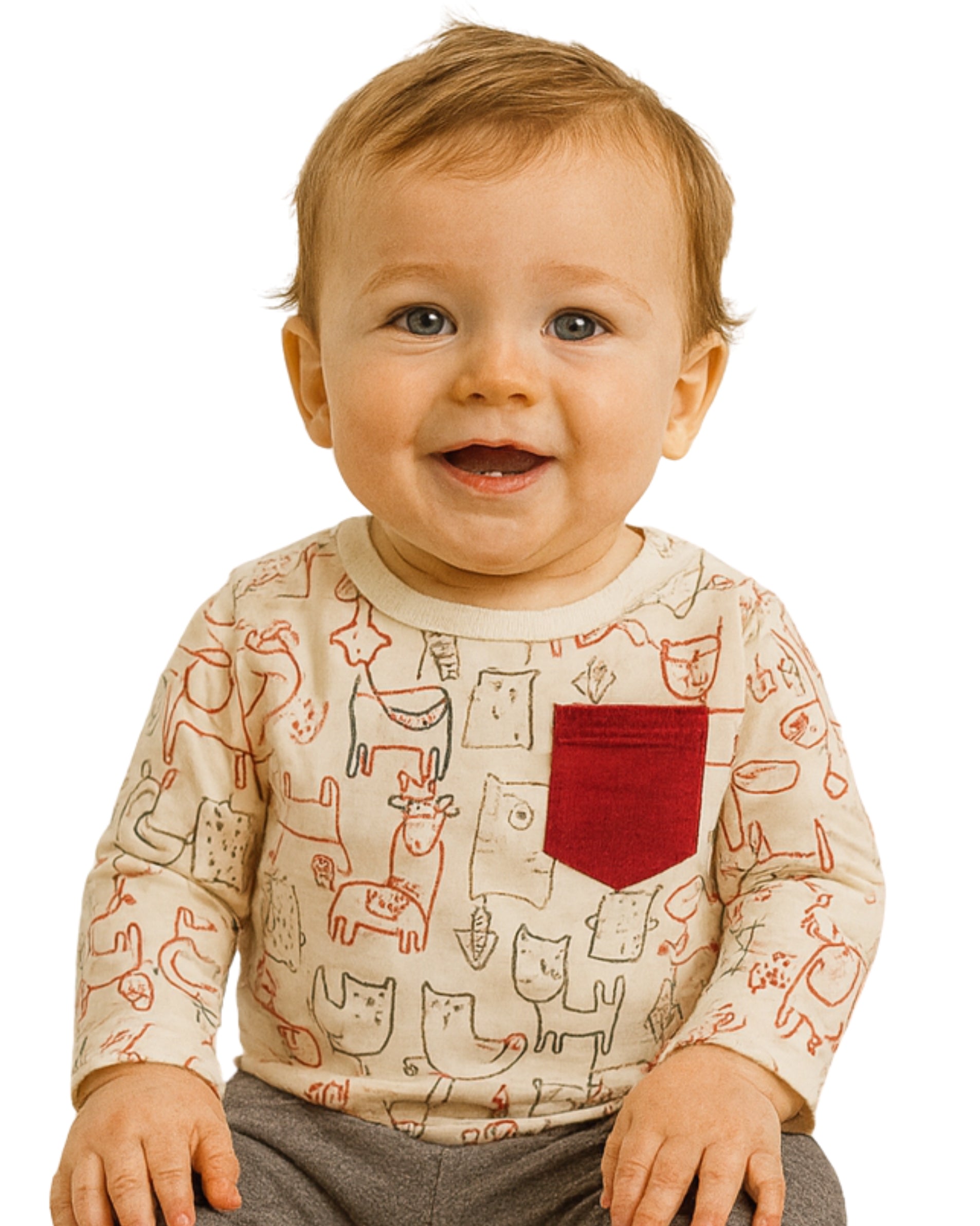 Baby boys, Long Sleeve, Crew Neck, Cool Animal Graphics, Casual, 60% Cotton, 40% Polyester