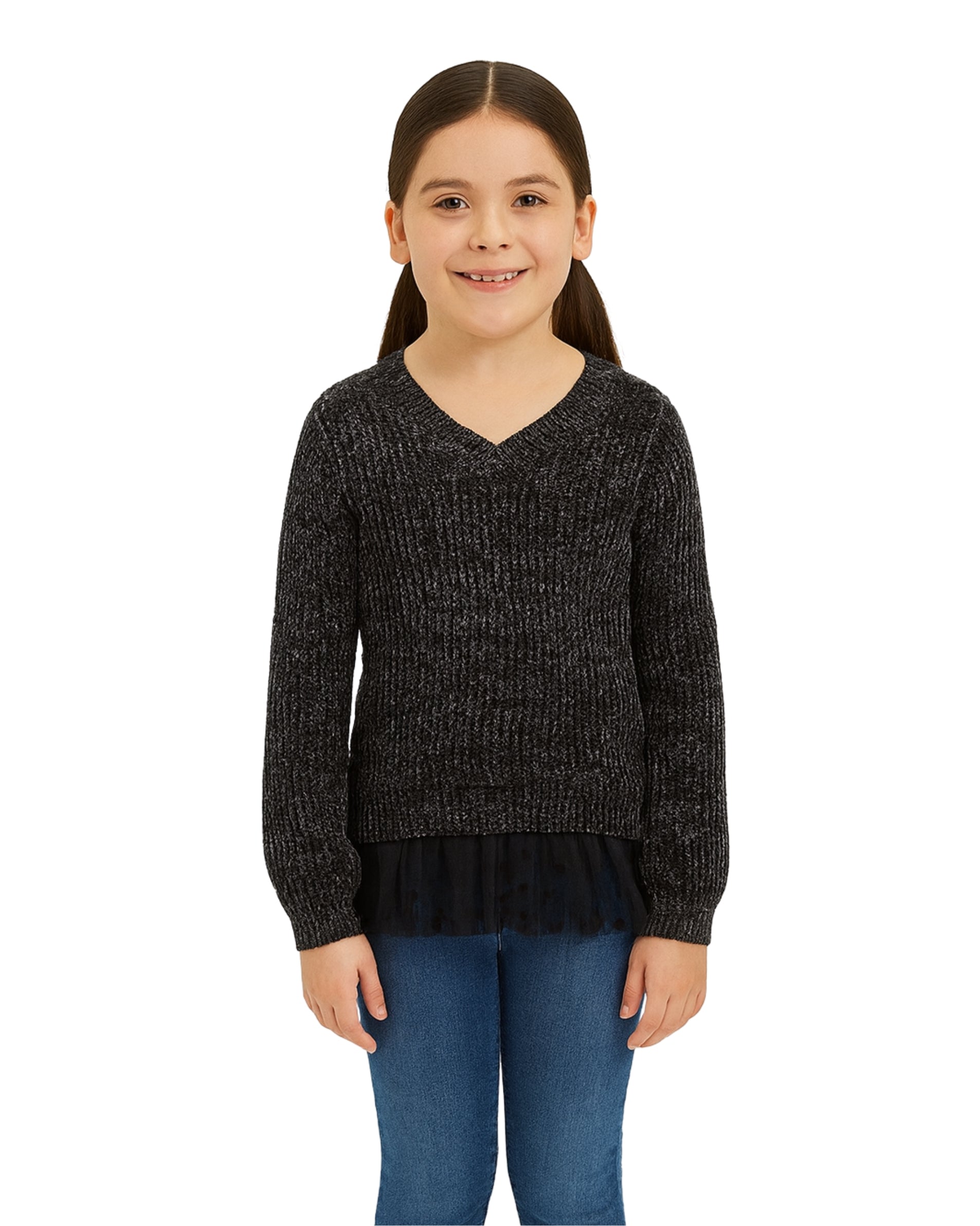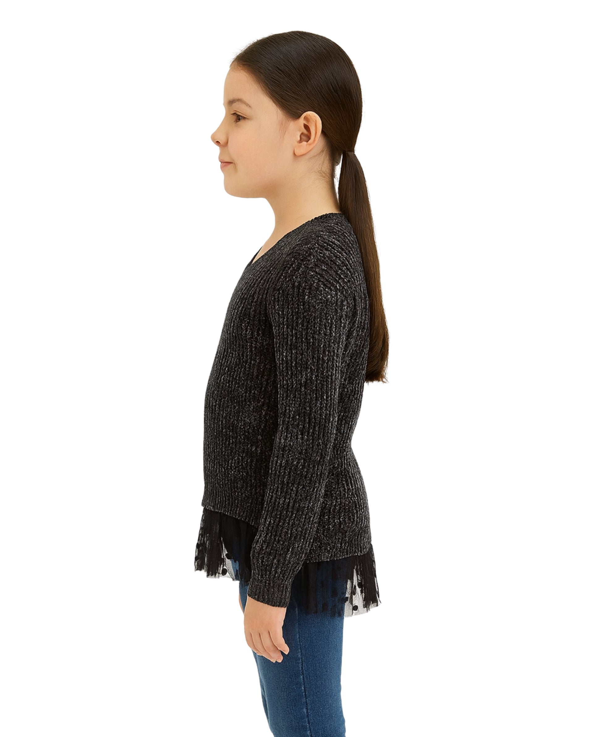 Girls, Long Sleeve, V Neck, Layered Look, Ruffle, Chifon, Glitter, Warmth, Stylish, 100% Polyester