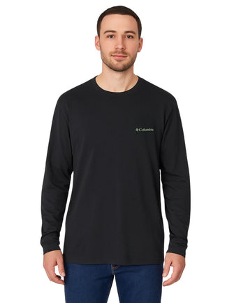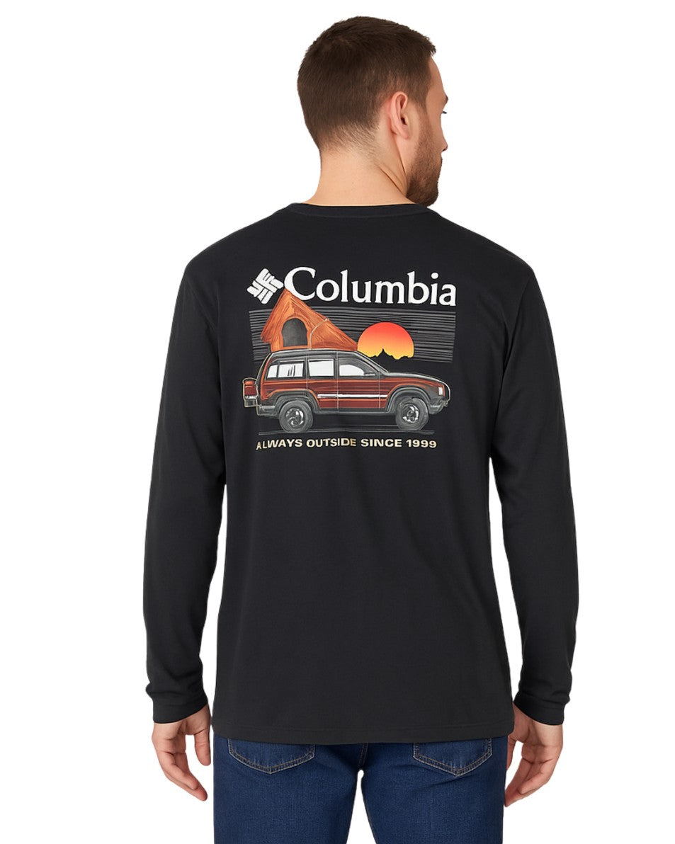 Men, Long Sleeve, Crew Neck, Back Always Outdoor Graphic, Chest Logo Sign, Soft, Rib Cuffs, Casual, 60% Cotton, 40% Polyester