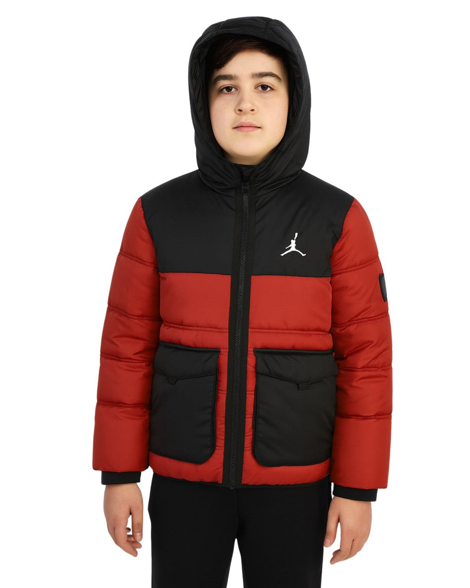 Boys, Long Sleeve, Hooded, Full Zipper, 2 Pockets With Secure Flaps, Embroidered Jumpman Logo Chest, Rib Cuffs, Puffer, Warm, 100% Polyester