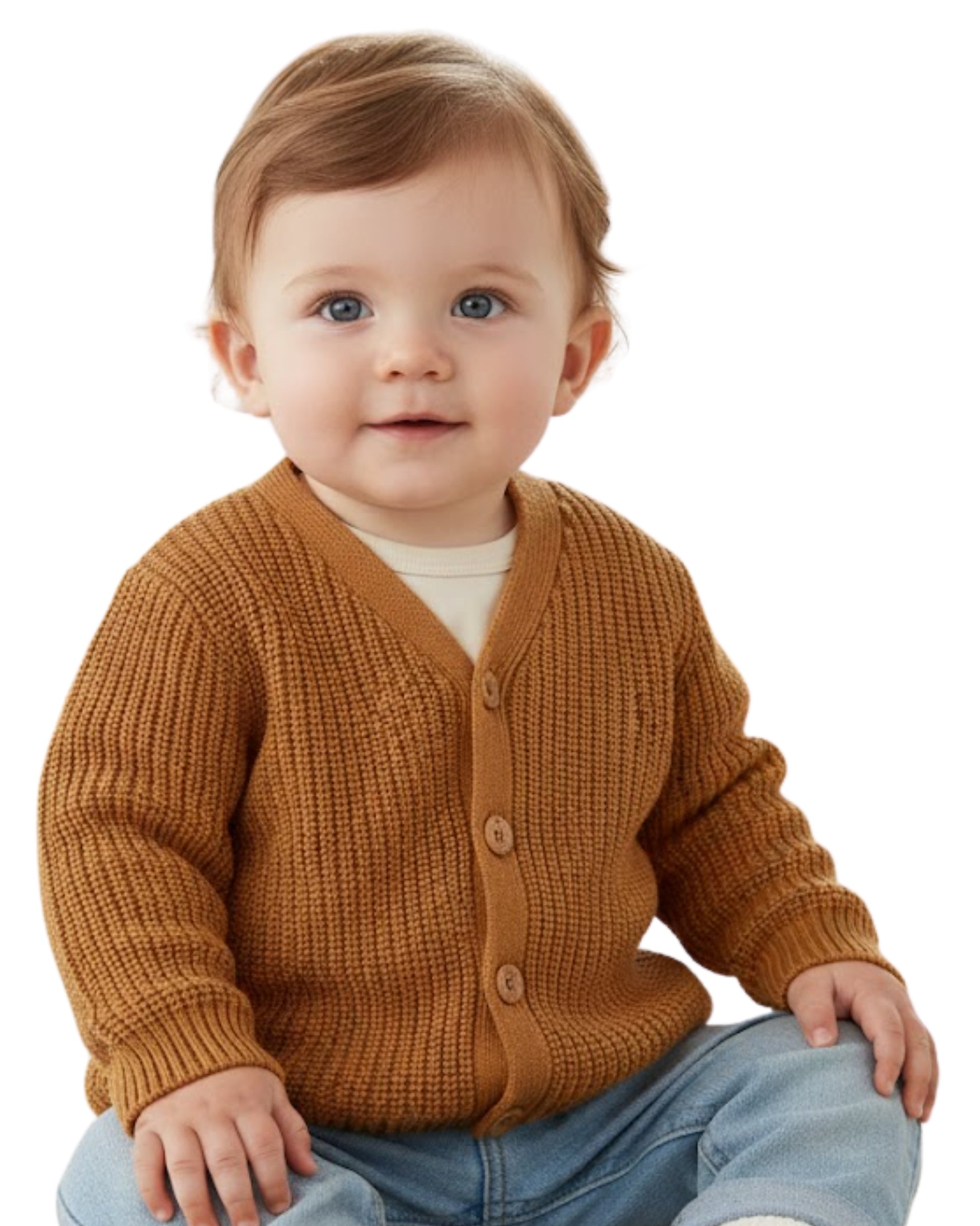 Baby Boys, Long Sleeve, V Neck, Button Closure, Soft Wool, Warm, Casual, 100% Cotton
