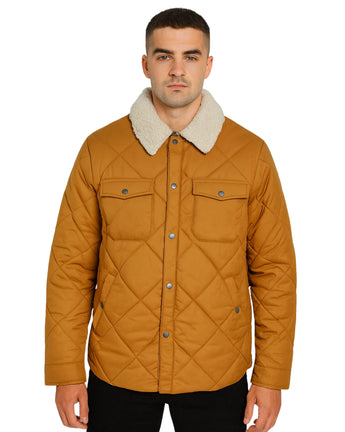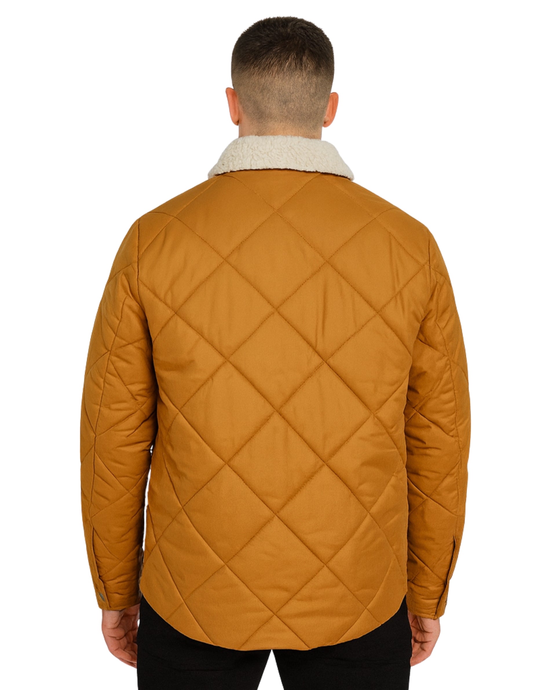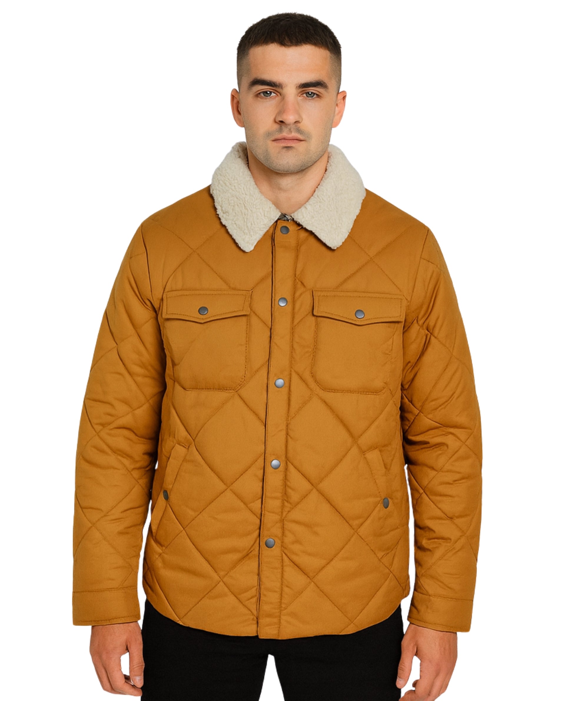 Sherpa Collar Vegan Snap Front, Button, 4 Pockets, Gold Faux