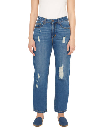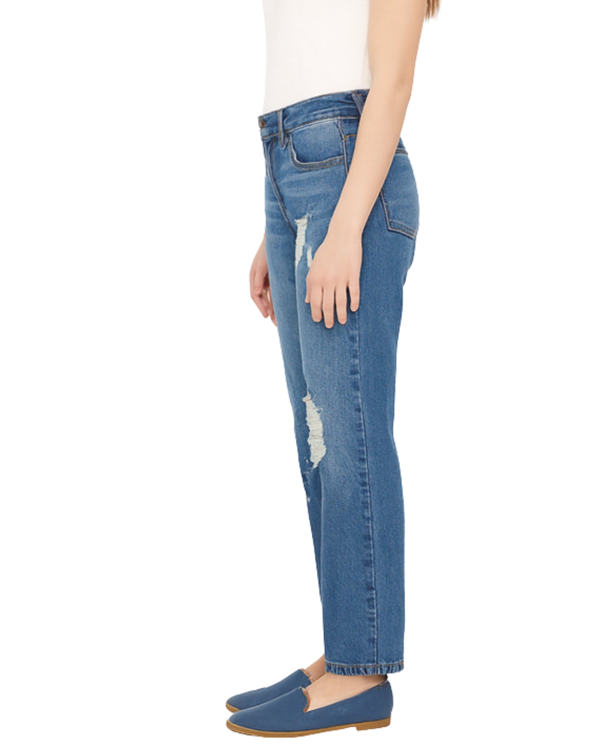 Elastic Waistband, Belt Loops, 4 Pockets, Button Closure, Zipper Closure, Ripped