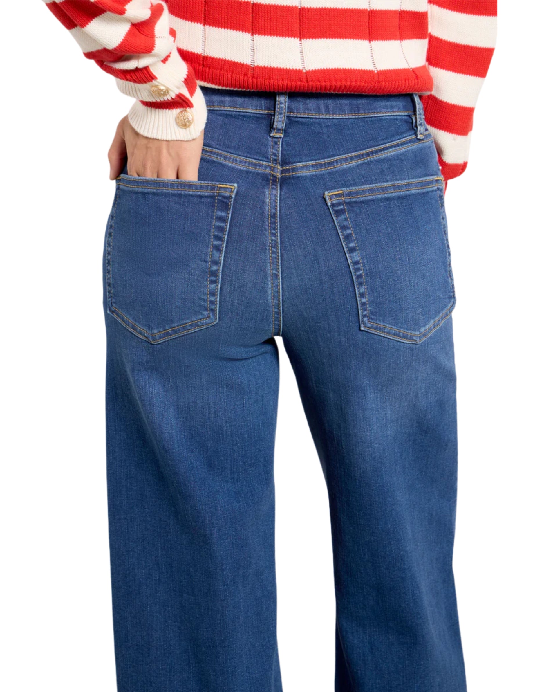 Women, Button With Zipper Closure, 5 Pockets, Wide Leg, Full Length Inseam, Belt Loops, 99% Cotton, 1% Spandex