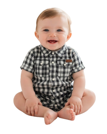 Baby, Overall, Polo Neck, Short Sleeve, 2 Pockets, 45% Cotton, 55% Linen