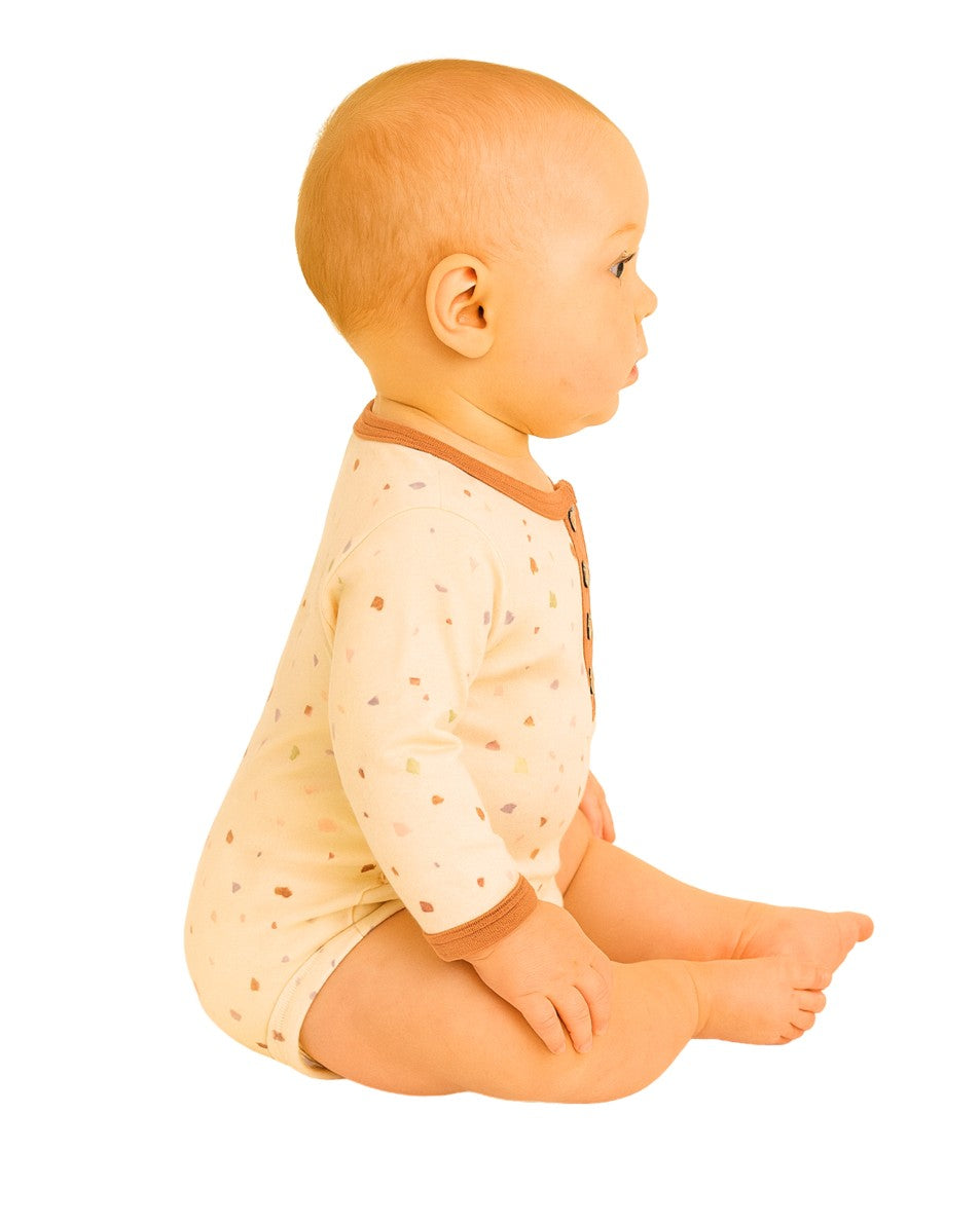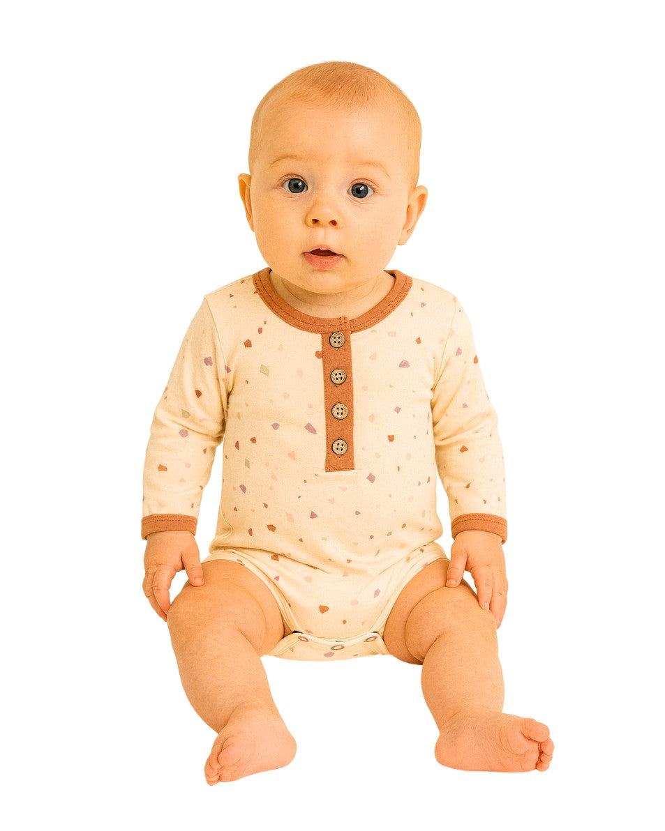 Baby Boys, Long Sleeve, Crew Neck, Front Button Down, Snap Button, Geometric, Soft, Comfort, 93% Viscose, 7% Spandex