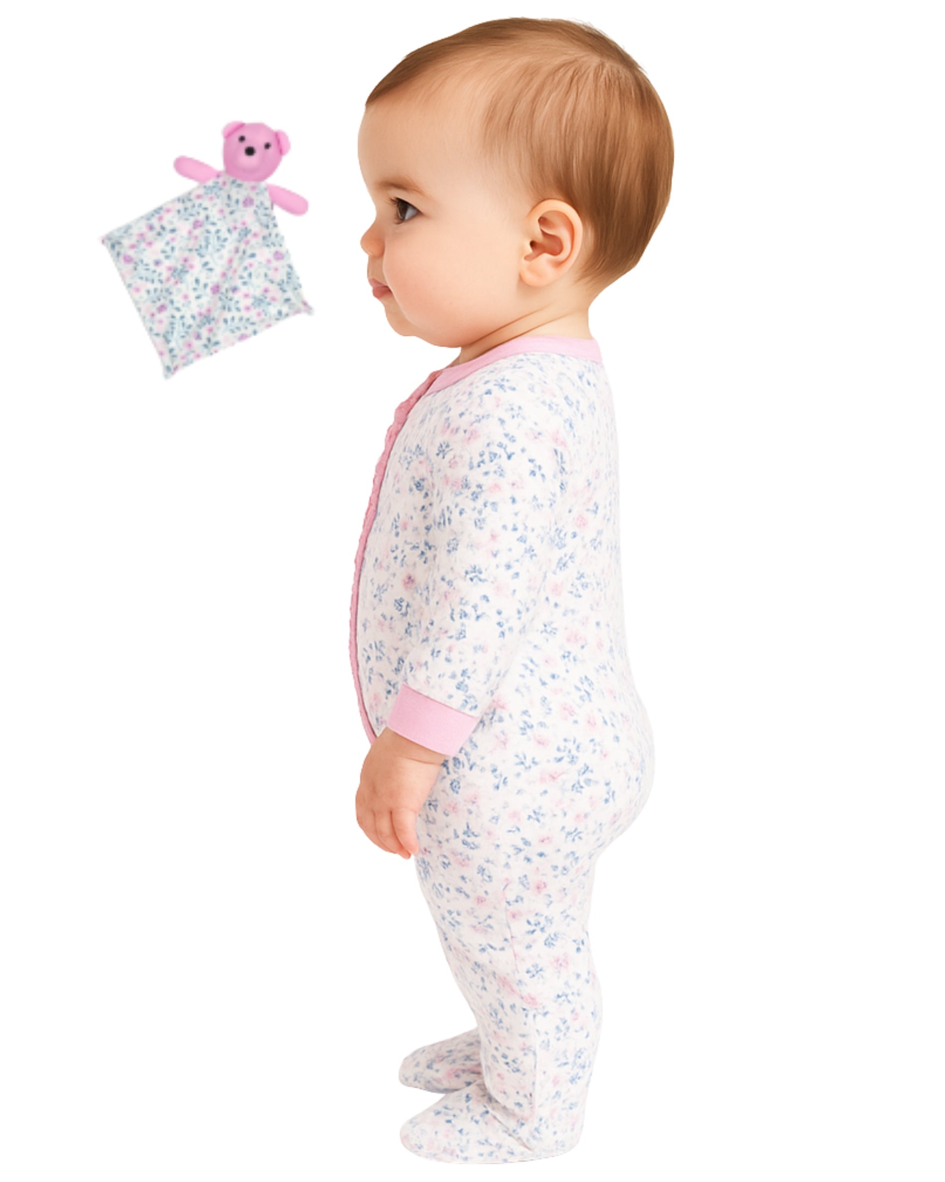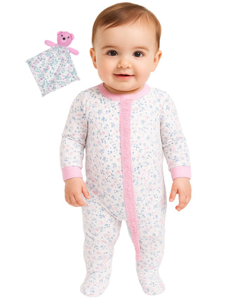 Baby Girls, Long Sleeve, Closed Toe, Front Zipper Closure, Floral, Comfort & Soft, Comes With Blankie, 95% Polyester, 5% Spandex