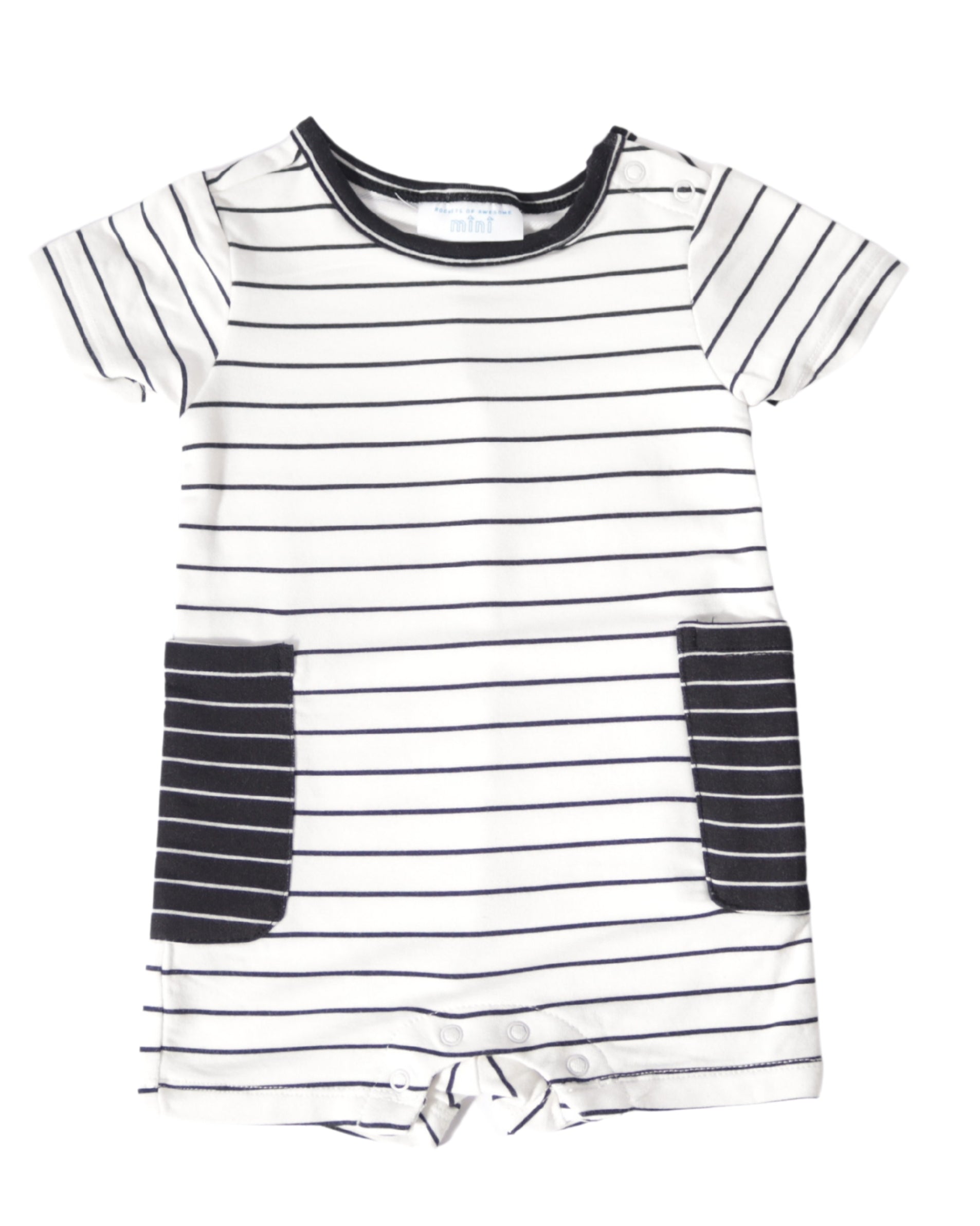 Baby Boys, Short Sleeve, Crew Neck, 2 Pockets, Snap Button, Stripe, Comfort, 94% Modal, 6% Spandex