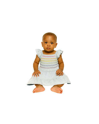 Girl, Baby, Dress, Short Sleeve, Square Neck, Cotton, Polyester, Embroidered, Pullover, Puff Sleeve, Knee Length, Fit & Flare, Smocked