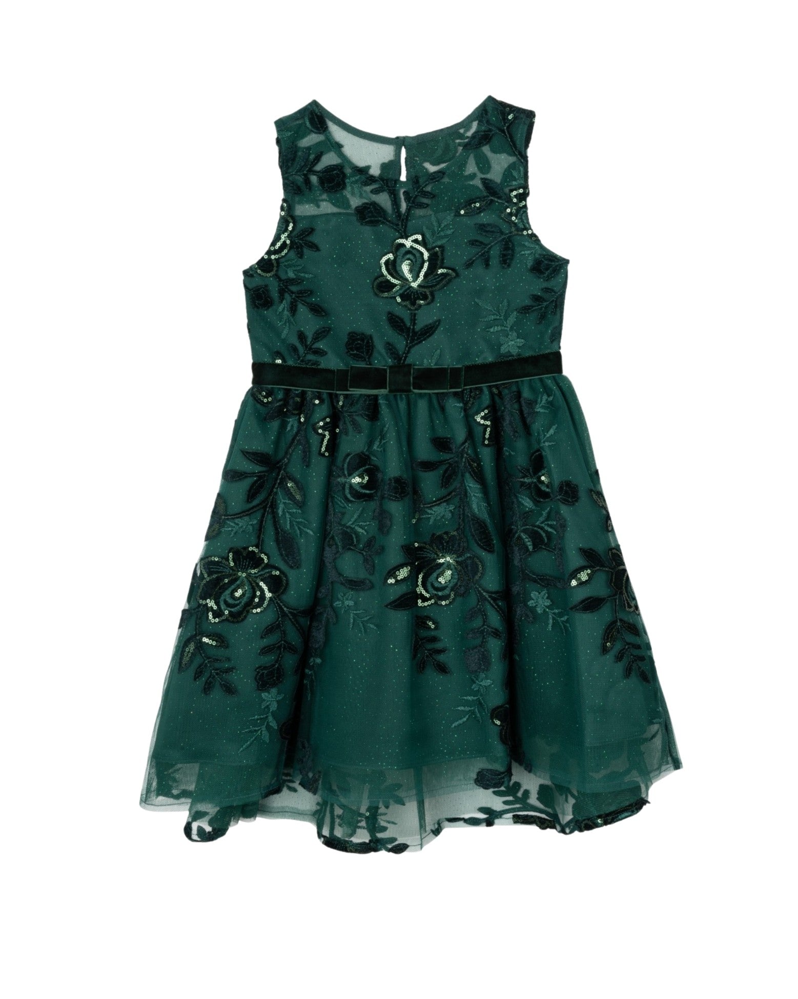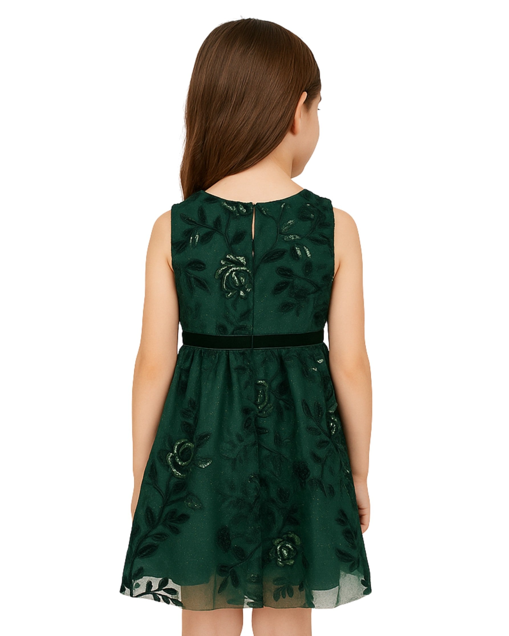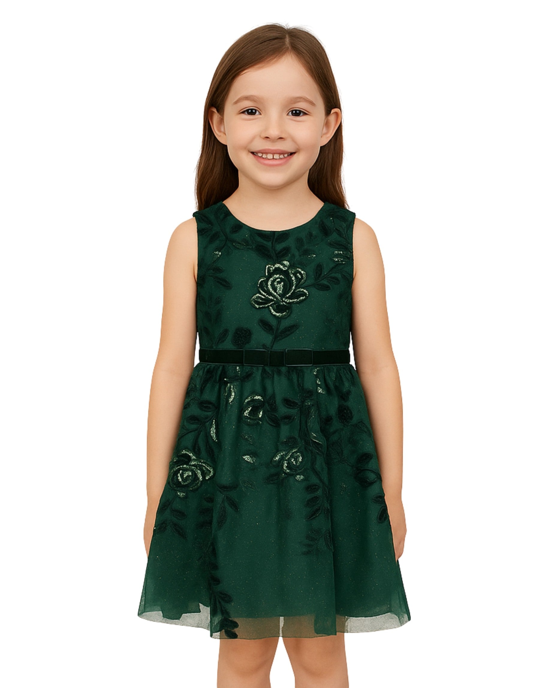 Girls, Pull On, Sleeveless, Round Neck, Back Zipper, Sequined Floral, Ruffle, Chic & Stylish, 100% Polyester