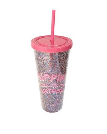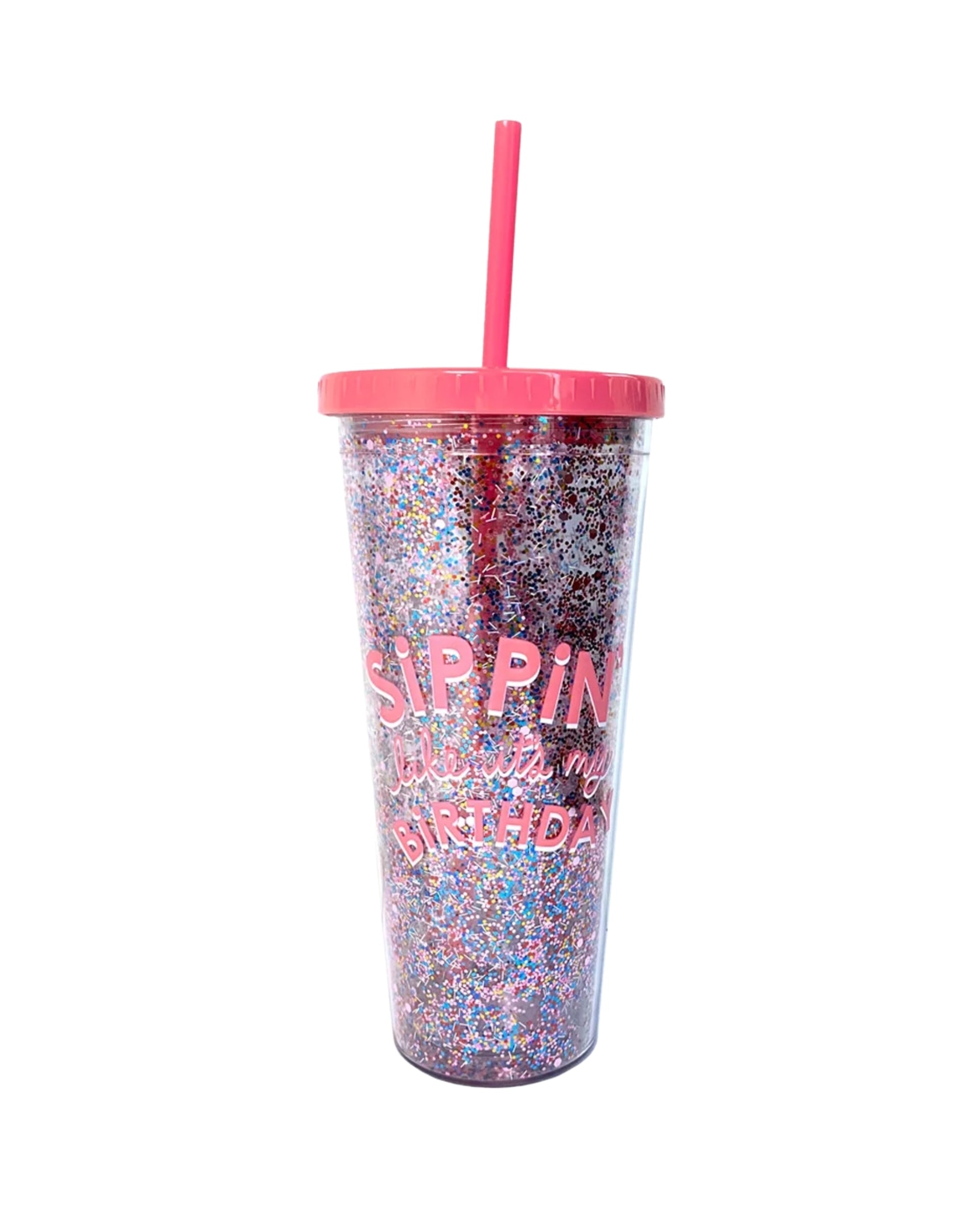 Packed Party 'Sippin' like It's My Birthday' Pink Plastic Cup With Straw, 650ml, Sprinkle, It Designed to Withstand Everyday Use, Ensuring Long Lasting Durability