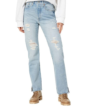 Women, Elastic Waistband, 5 Pockets, Button Closure, Zipper Closure, Belt loops, Ripped, 100% Cotton