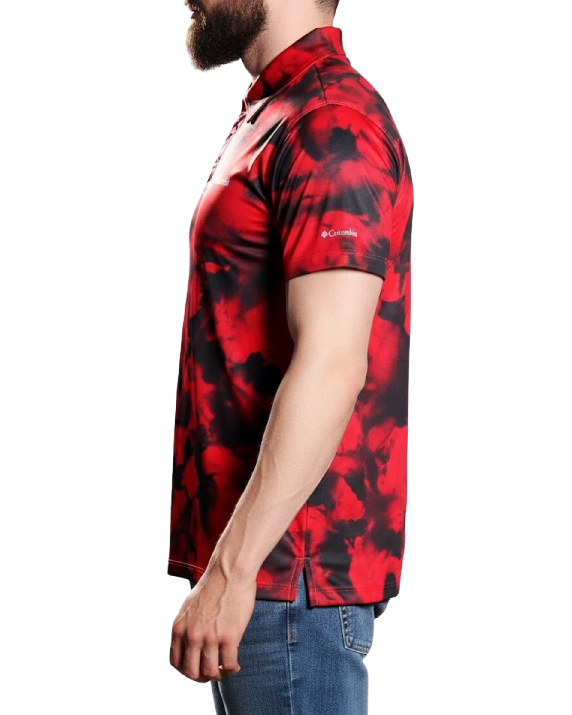 Printed, Short Sleeve, Logo Print, 3 Button Closure