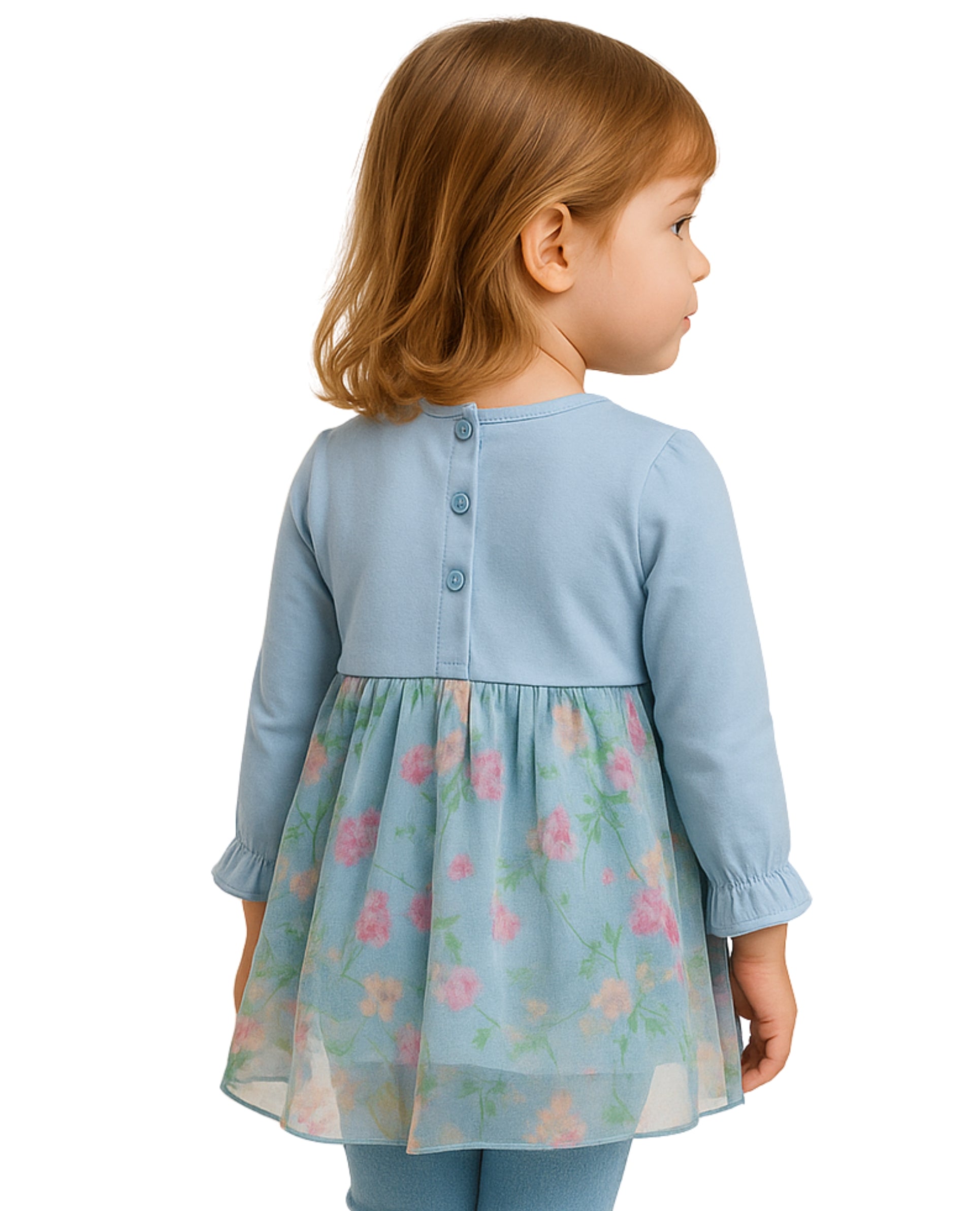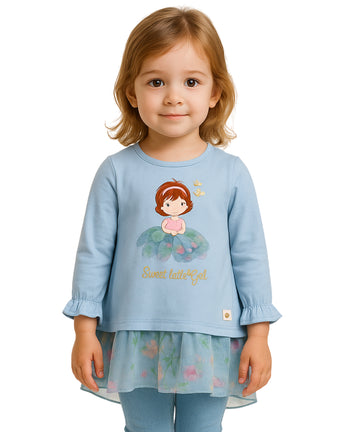 Baby Girls, Long Sleeve, Crew Neck, Back Button Closure, Ruffle, Graphic, Soft, 95% Cotton, Elastane