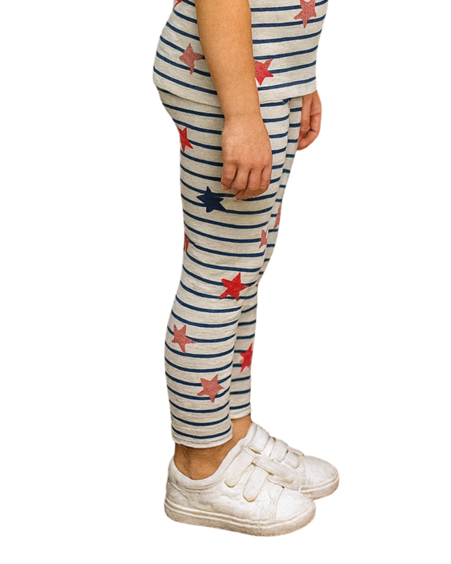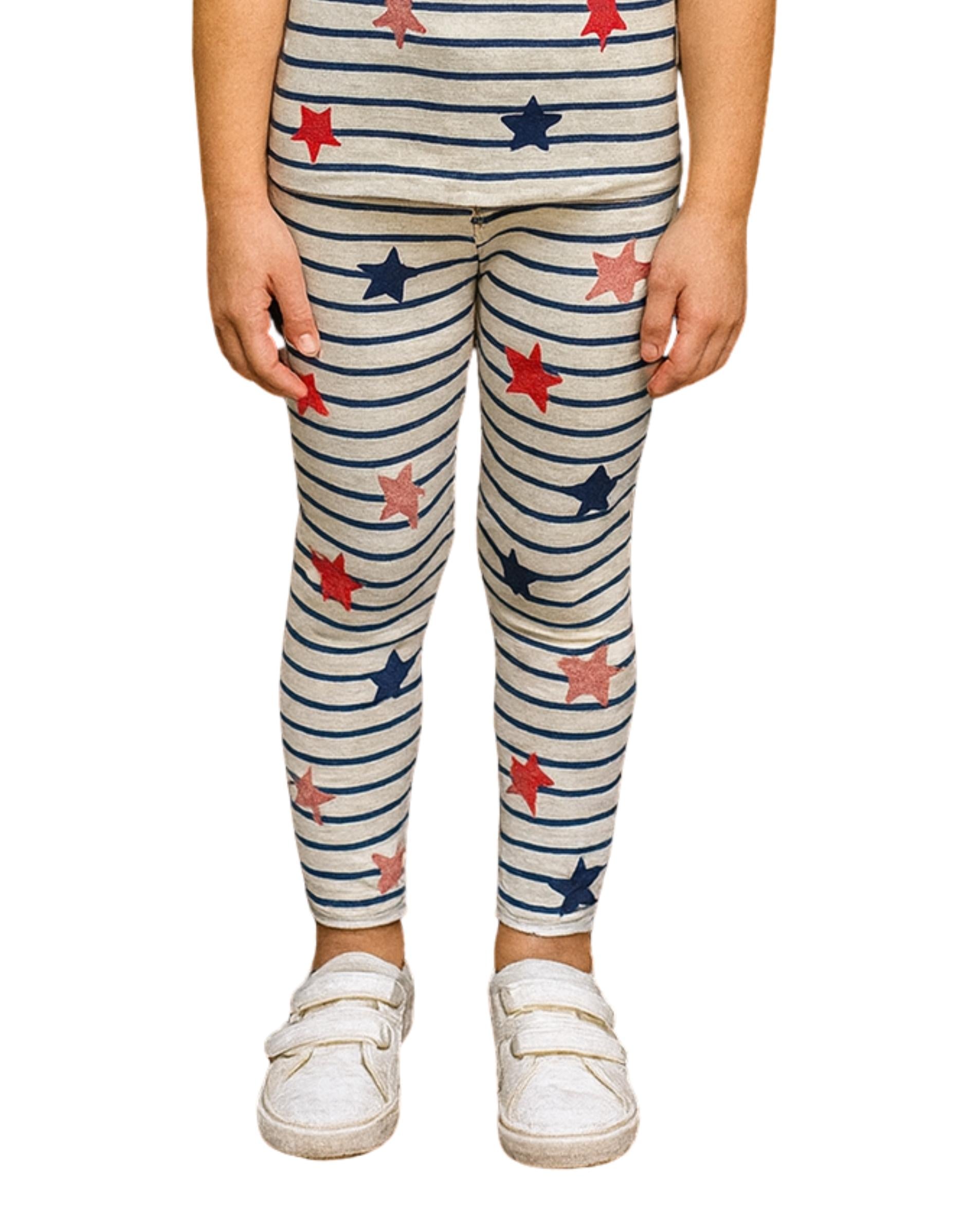 Girls, Pull On, Stretch, 2 Front Faux Pockets, 2 Back Pockets, Stripe, Star, Comfort, Casual, 93% Cotton, 2% Polyester, 5% Spandex