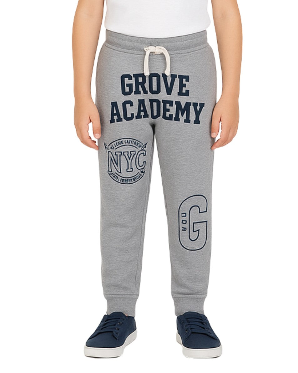 Boys, Pull On, Stertchy Waistband, Drawstring, 2 Pockets, One Back Pocket, Regular Fit, Front Groove Academy Pattern, Casual & Fit, 90% Cotton, 10% Viscose