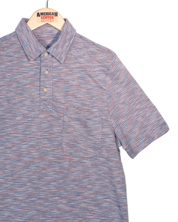 Short Sleeve, Polo, Striped, Button Closure, One Pocket, 100% Cotton