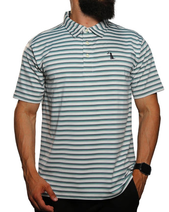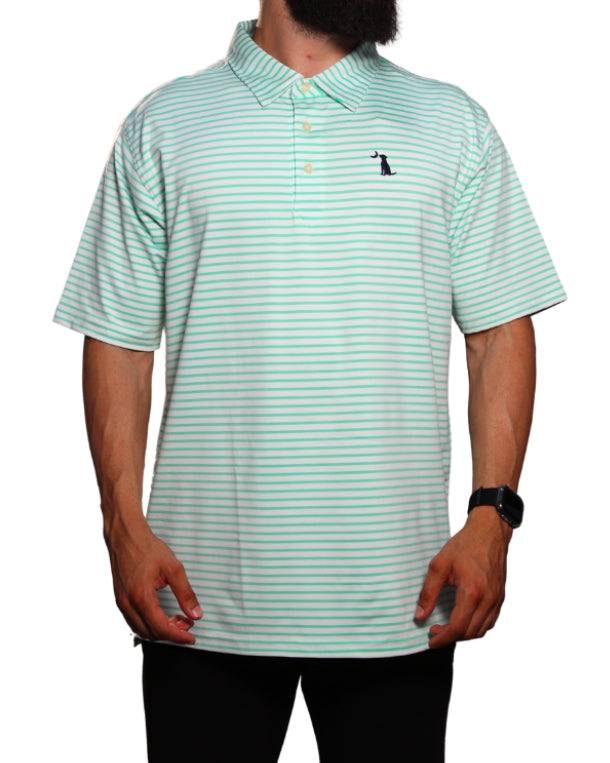 Allover Striped, Logo Chest, Short Sleeve, Polo, 88% Polyester, 12% Spandex