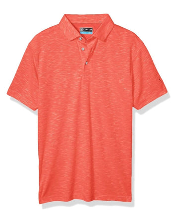 Short Sleeve, Polo, Button Closure, Striped, 100% Polyester Color: Peach