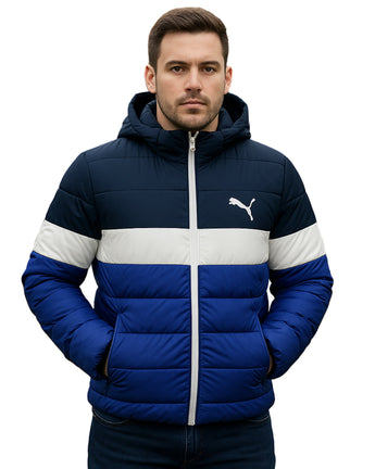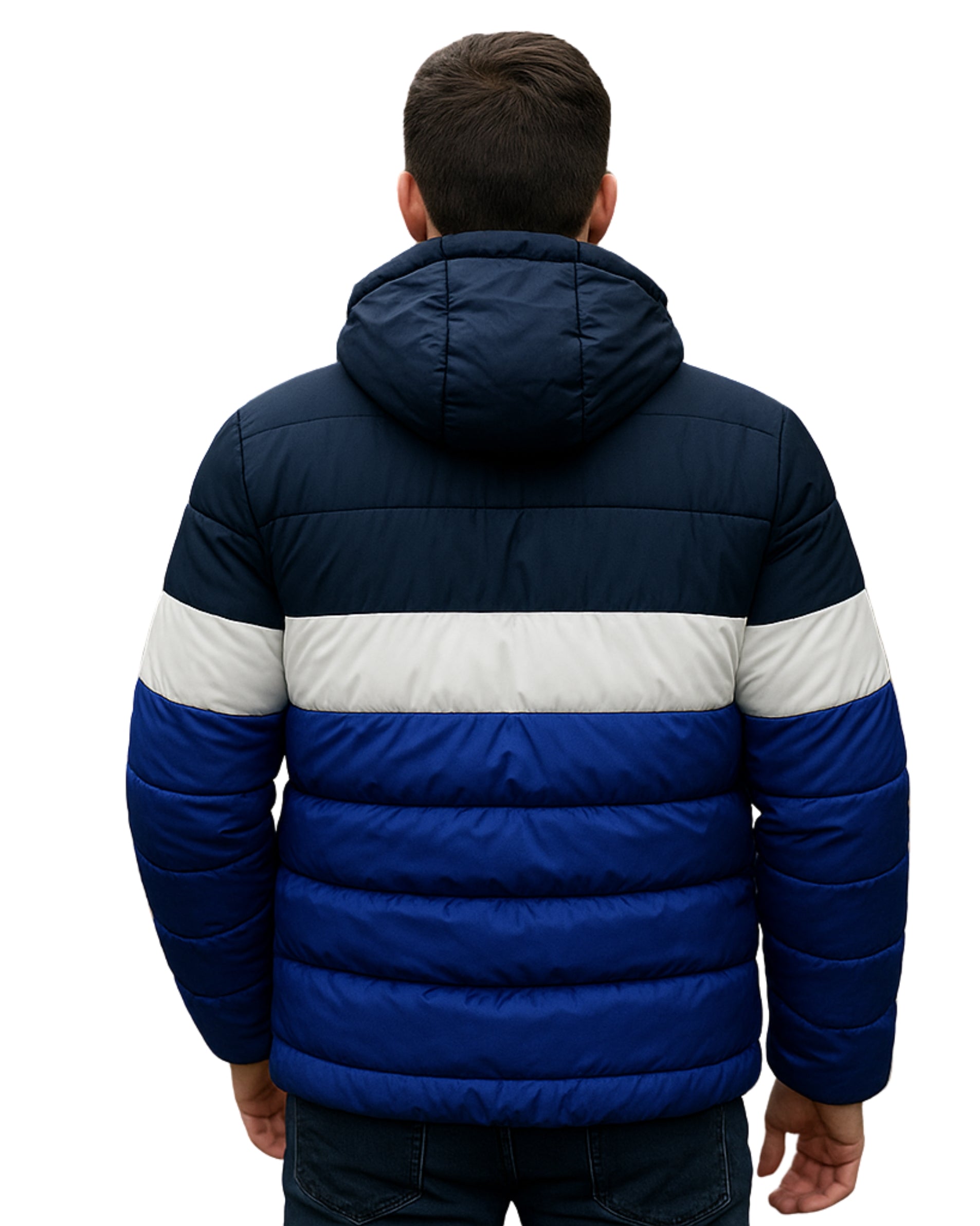 Men, Long Sleeve, Hooded, Full Zipper Closure, 2 Zipper Pockets, Removable Hood, Puffer, Colorblock, Warm, Stylish, 98% Cotton, 2% Elastane