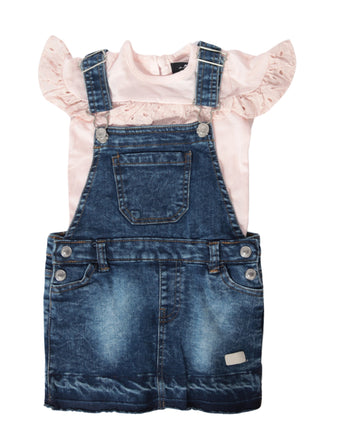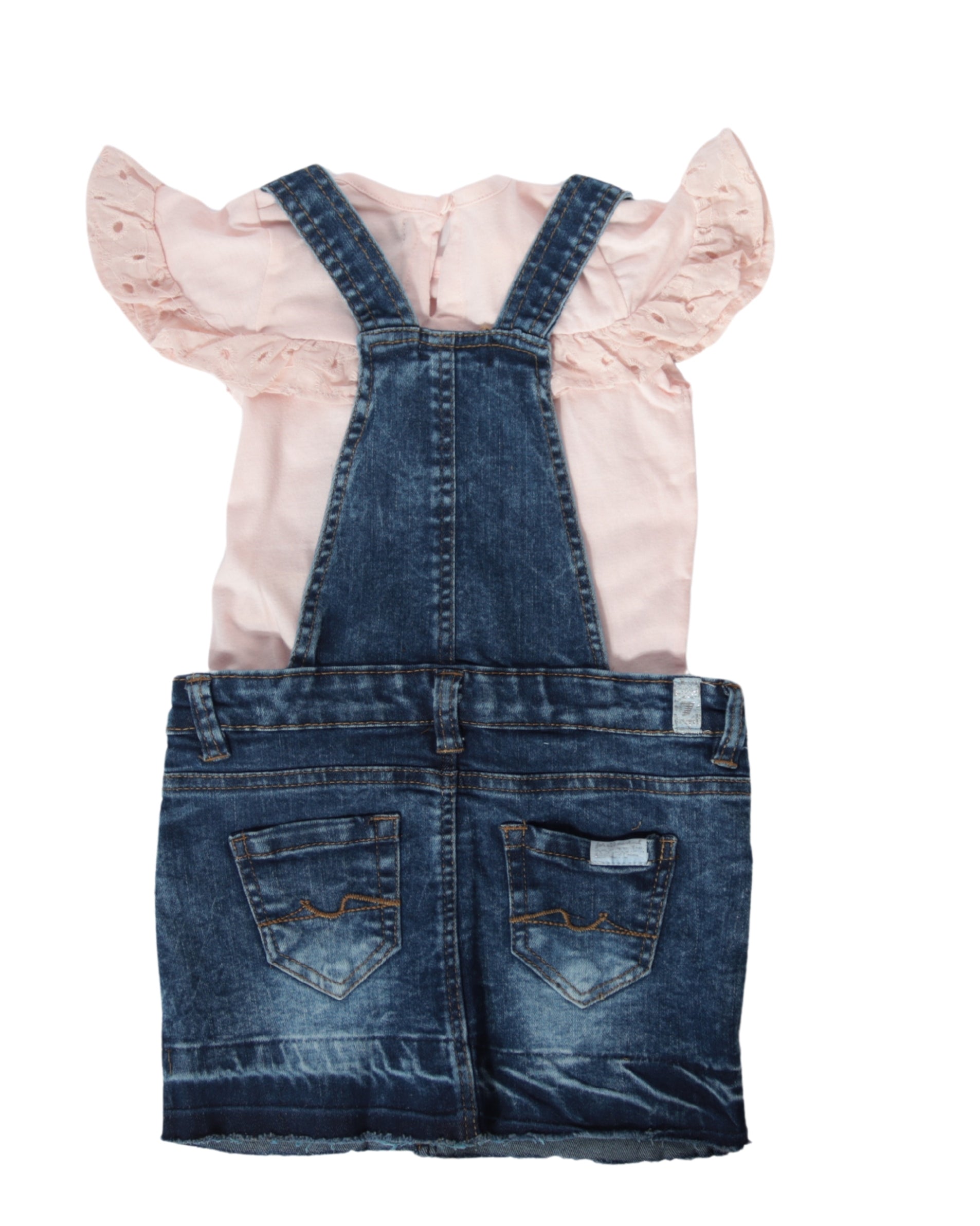 Baby Girls, Stylish Set, 1 Short Ruffle Sleeve T-Shirt, Crew Neck, Soft, Comfort, 1 Sleeveless Jumpsuit(Square Neck, 4 Pockets, Adjustable Strap), 60% Cotton, 40% Polyester