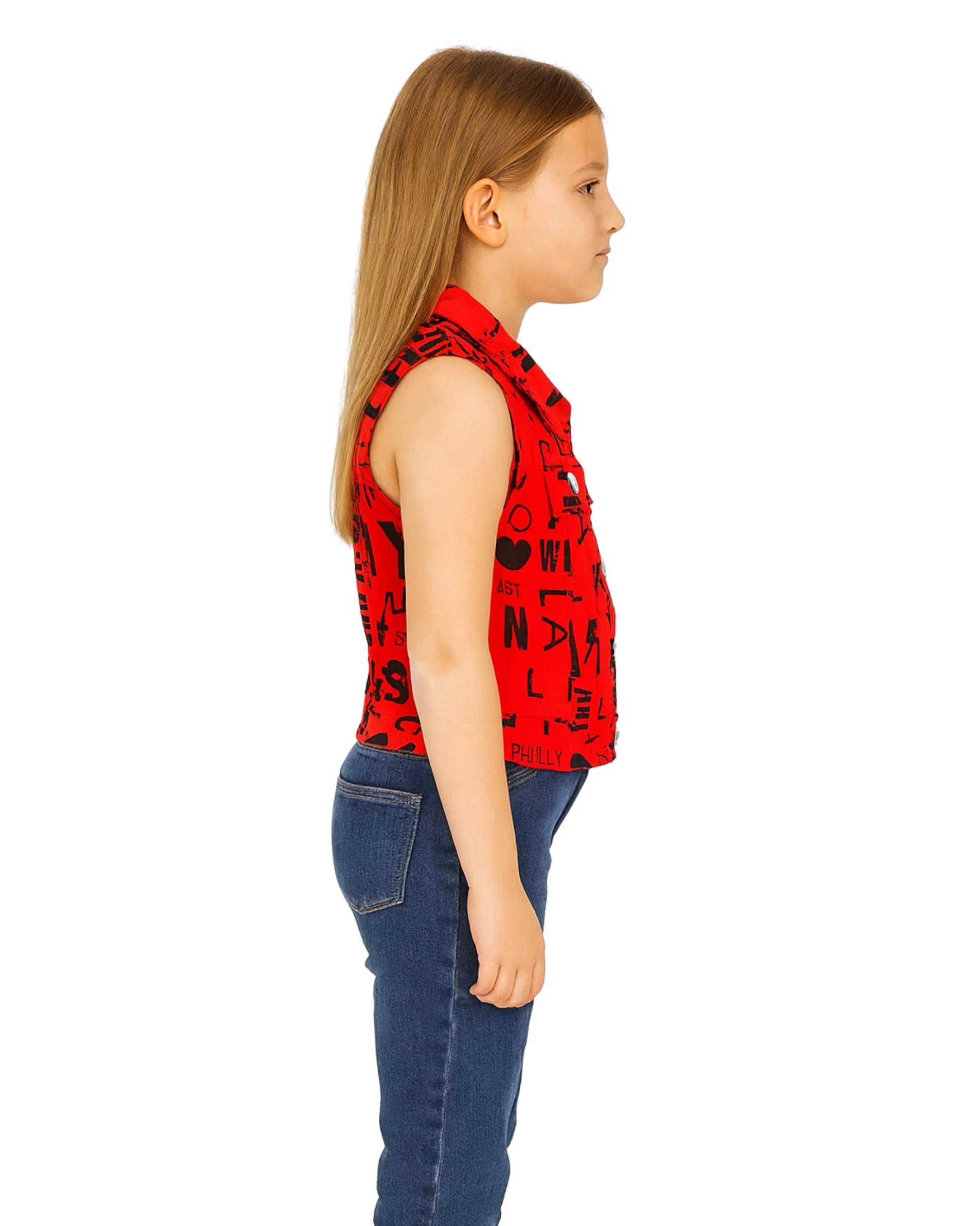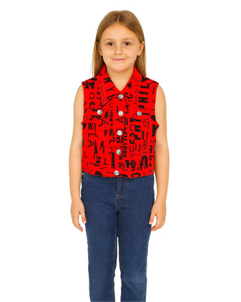 Sleeveless, Polo Neck, Button Closure, 2 Faux Button, All Print, 98% Cotton, 2% Spandex