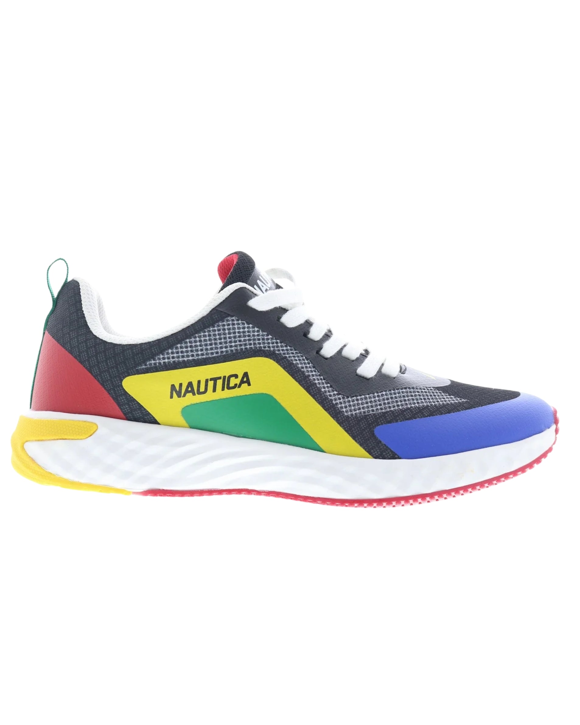 Men, Nautica printed logo on side, Lightweight white cushioned midsole with wave design, Running, training, casual wear, lifestyle, Breathable mesh with synthetic overlays