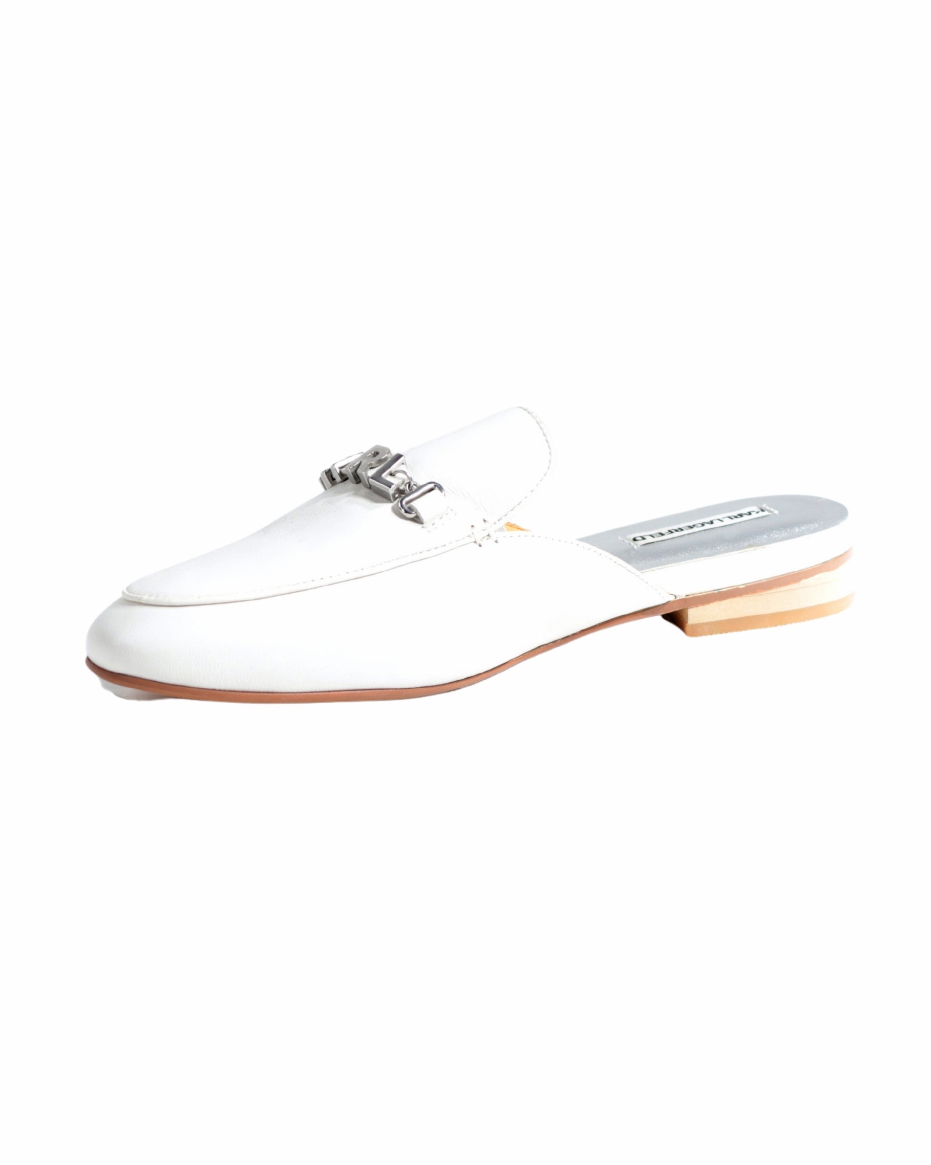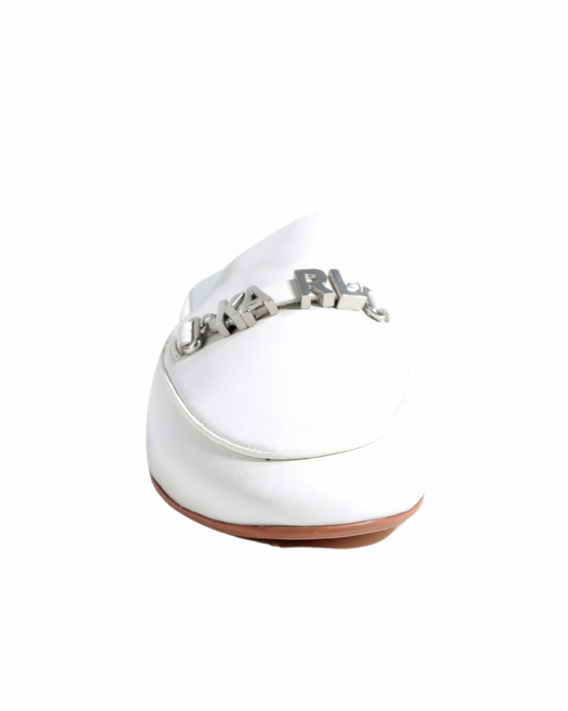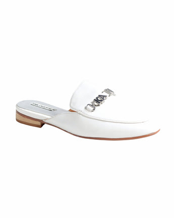 Women, Flat, Slip On, Low Block Key, Closed Toe, Leather, Logo Decorative Chain