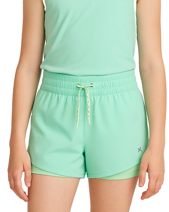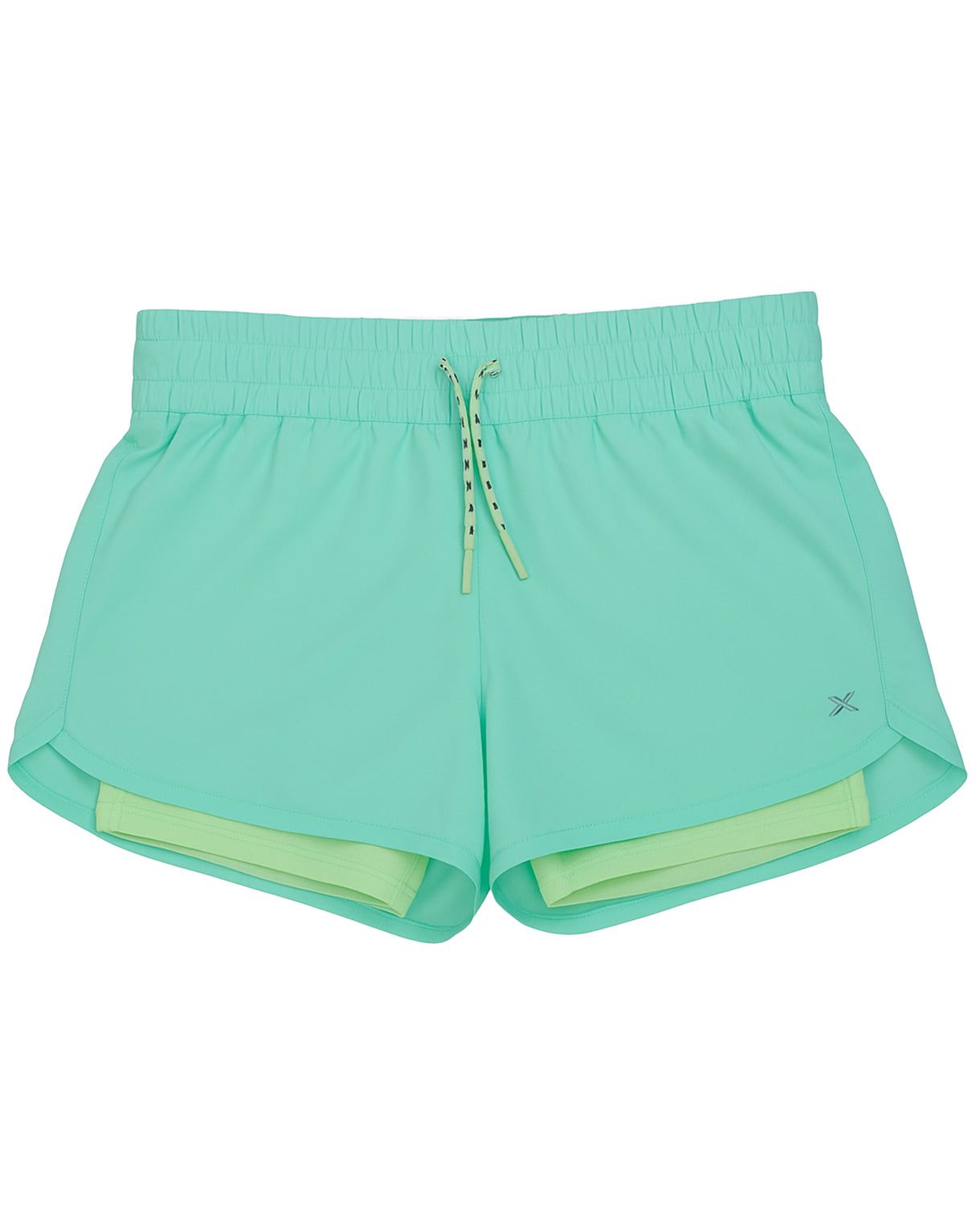 XERSION Girls Quick Dri Sport Shorts. Designed with moisture-wicking fabric, a built-in liner, and an adjustable drawstring waist, these mint green athletic shorts are perfect for running, training, or everyday active wear.