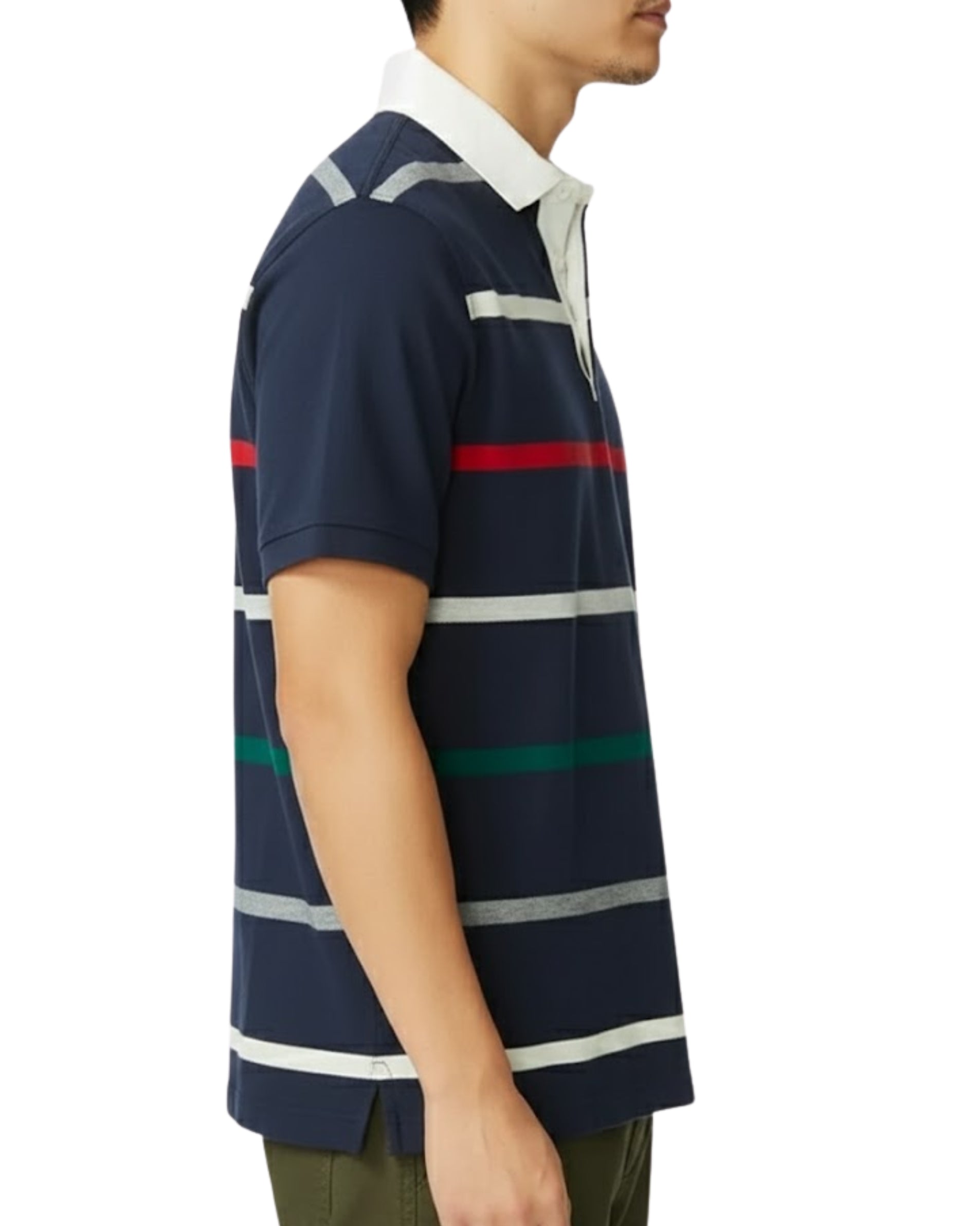 Short Sleeve, Polo Neck, Button Closure, Stripe, Casual, 100% Cotton