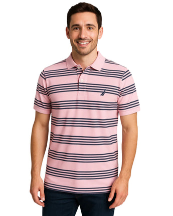 Men, Casual, Design, Striped, Polo Neck, Short Sleeve, 2 Button Closure