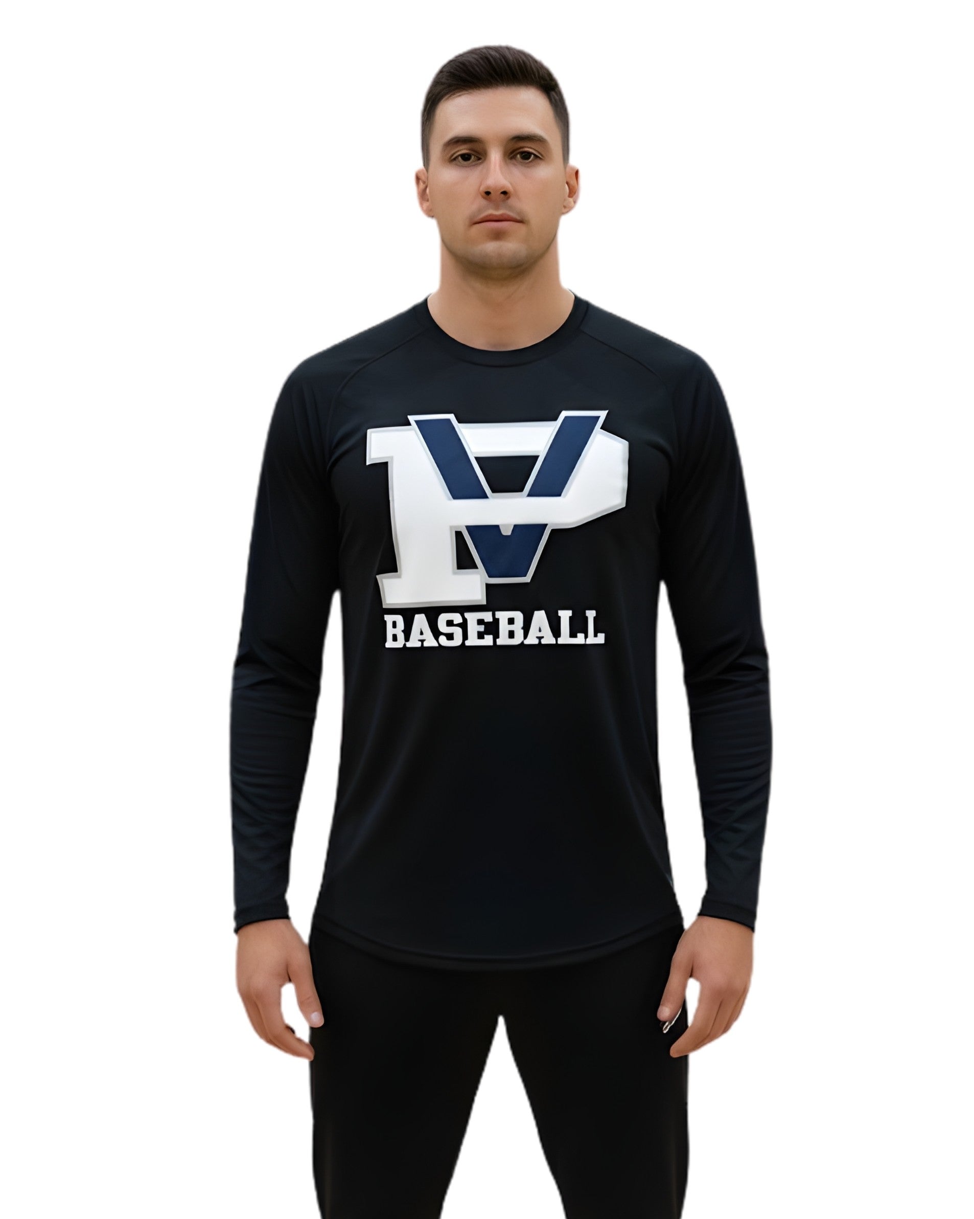 Men, Long Sleeve, Crew Neck, Front PV BASEBALL Pattern, Soft, Fit, 100% Polyester