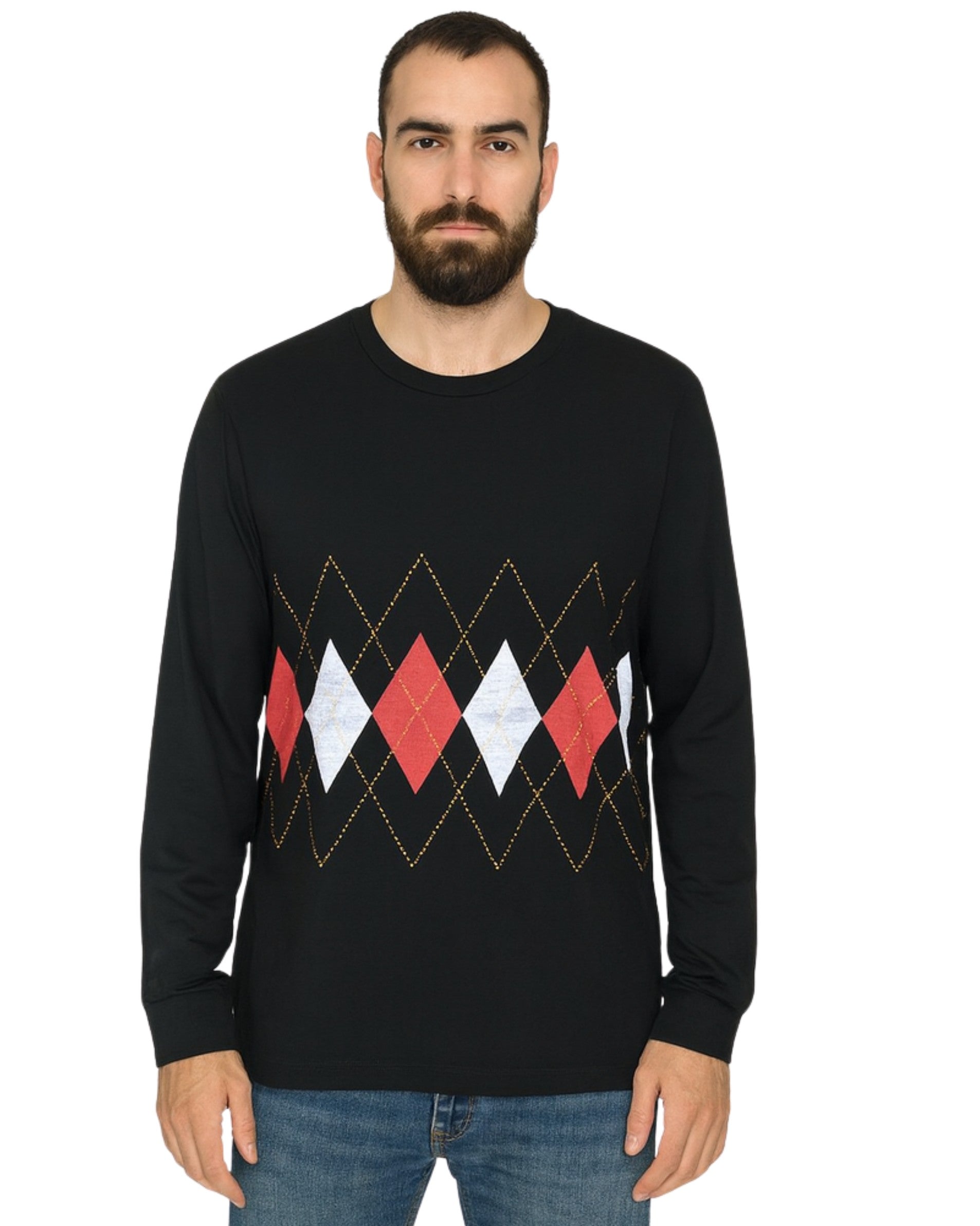 Men, Long Sleeve, Crew Neck, Relaxed Fit, Comfort, Rib Cuffs, Standard Fit, Front Rhombus Design, Casual