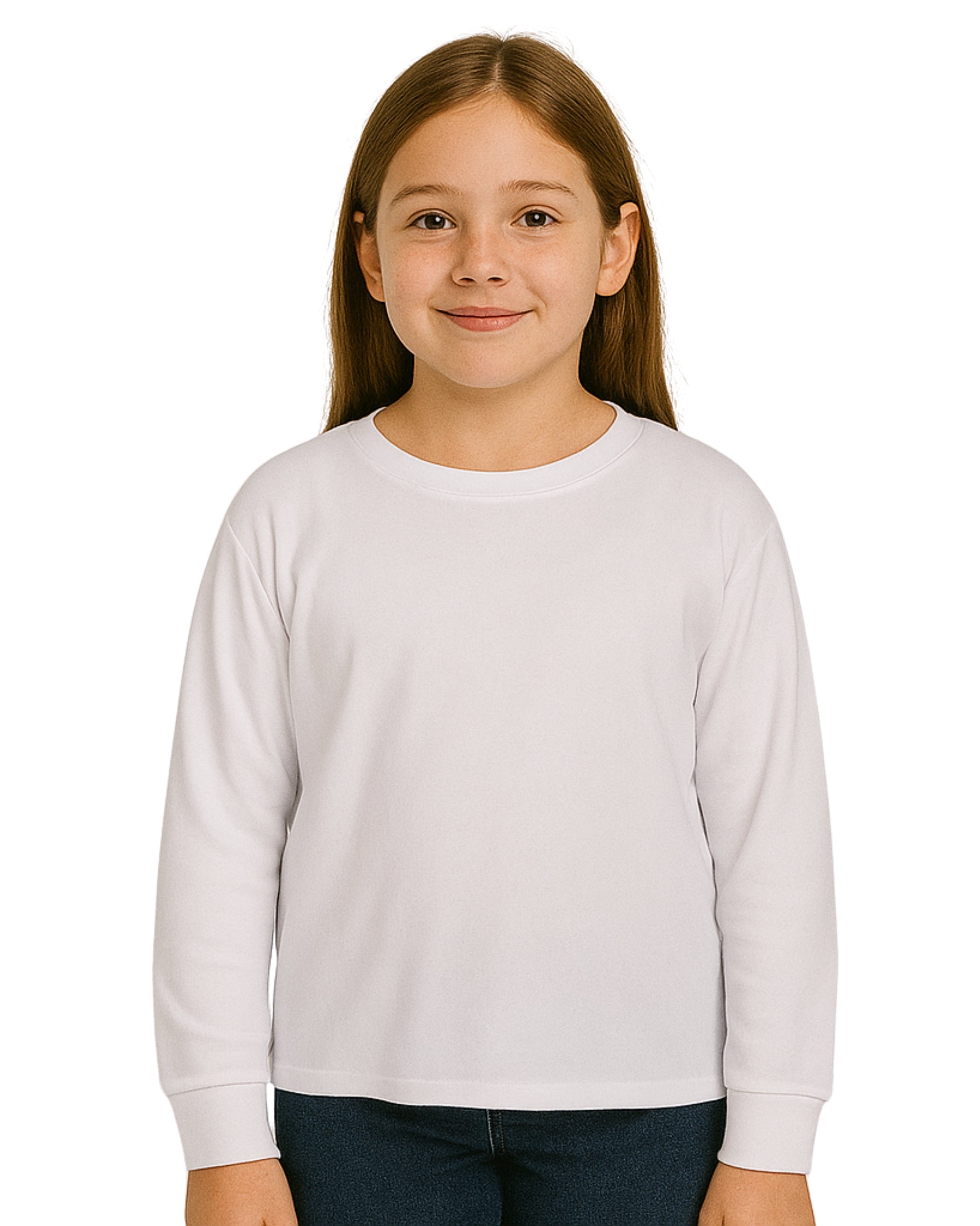 Kids, Girls, Long Sleeve, Comfort, Crew Neck, Casual, Mesh, 60% Coton, 40% Polyester