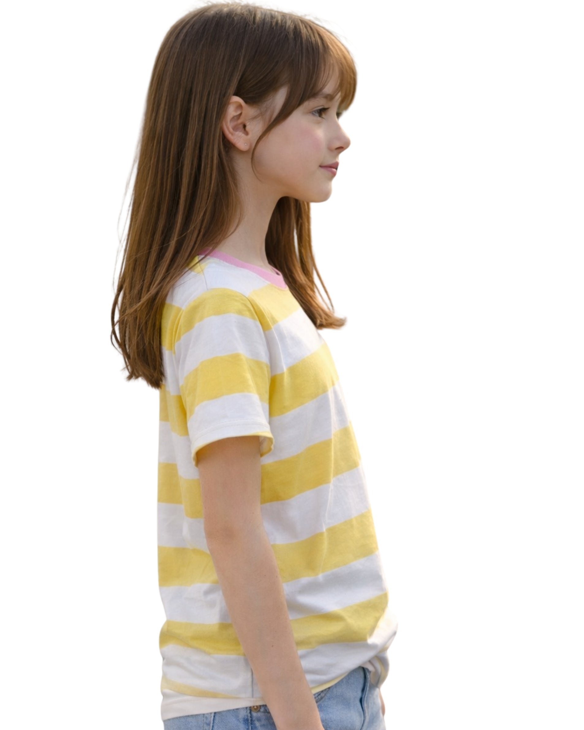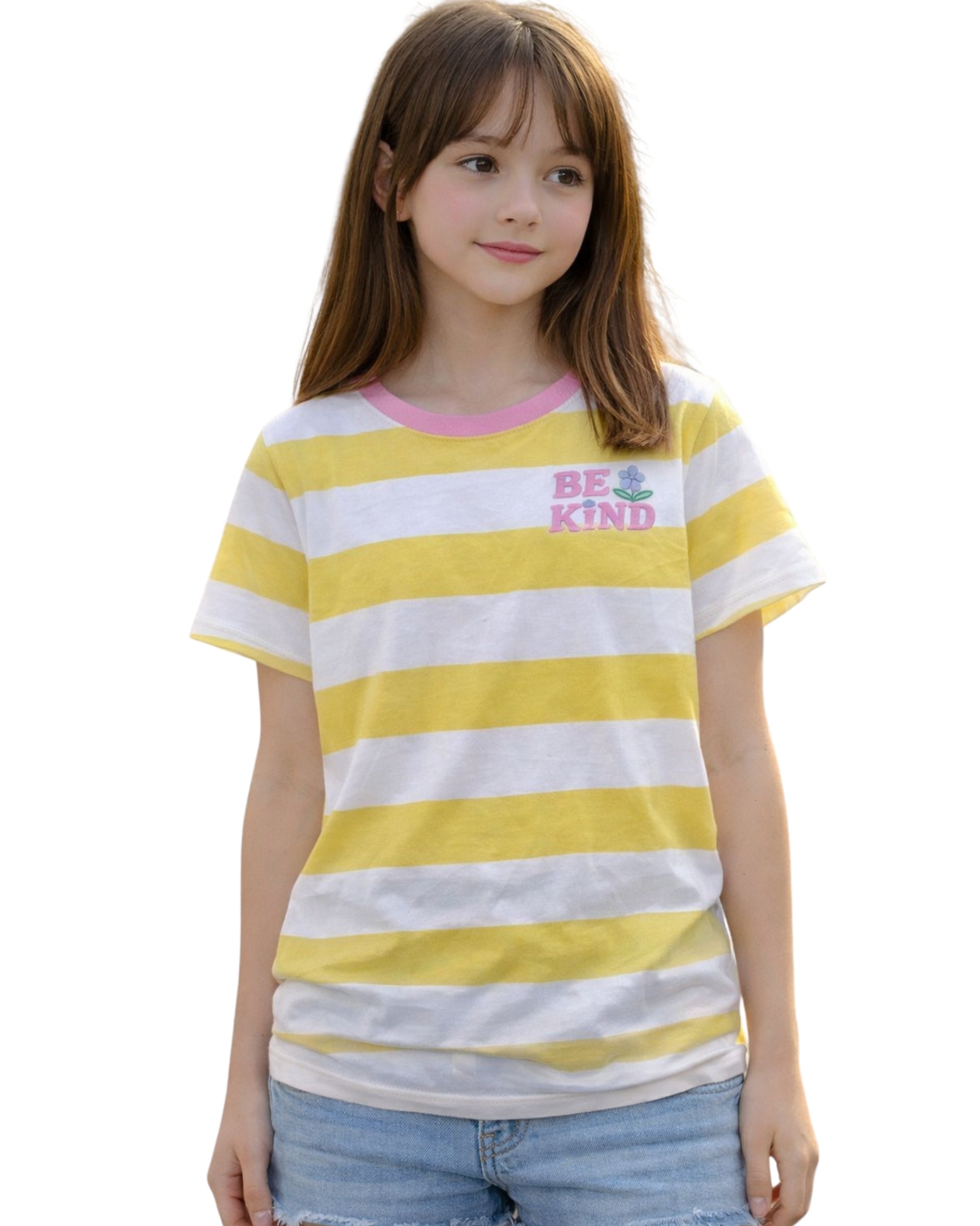 Kids, Girls, Casual, Soft, Stretch, Stripped, Design, Round Neck, Short Sleeve