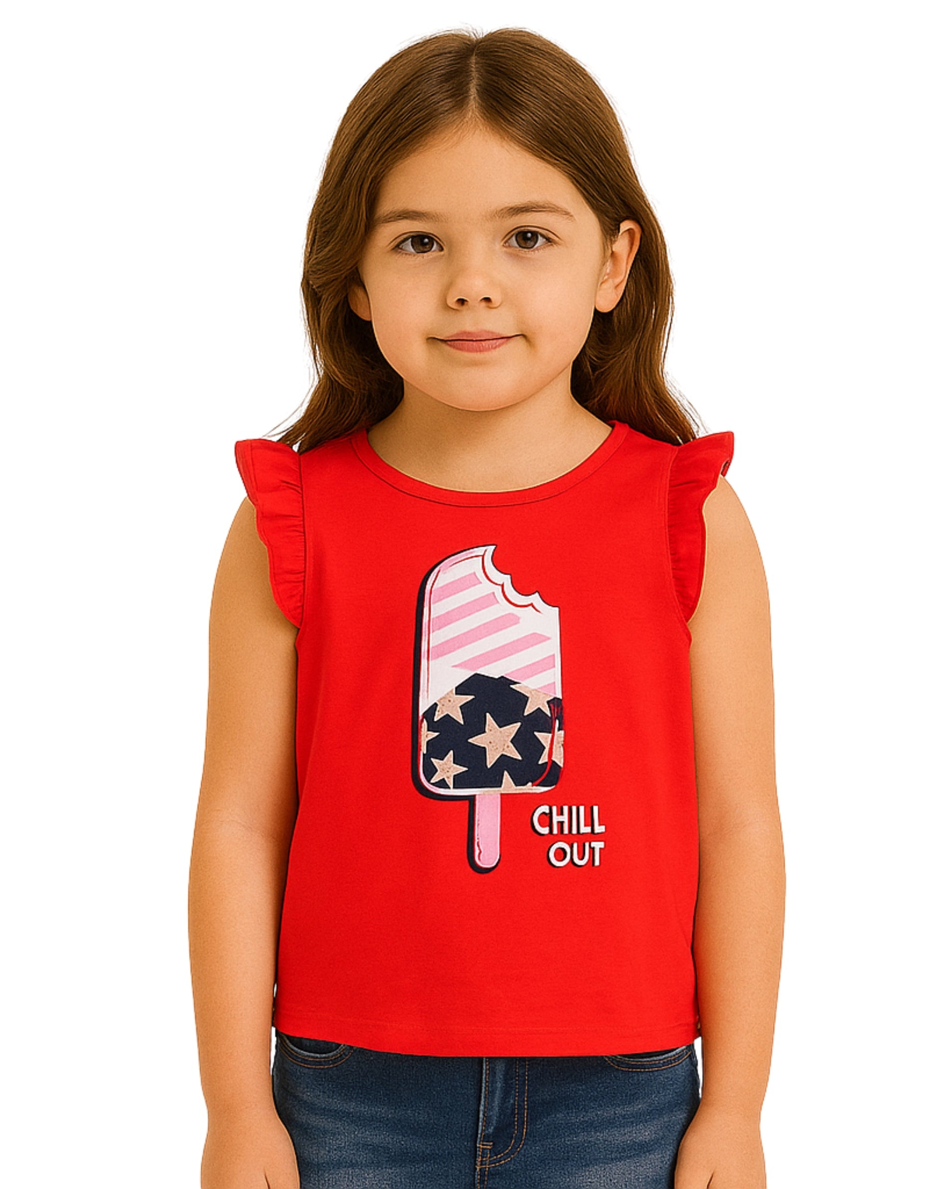Sleeveless, Ruffle, Fit, Casual, Printed, 60 % Cotton, 40 % Polyester