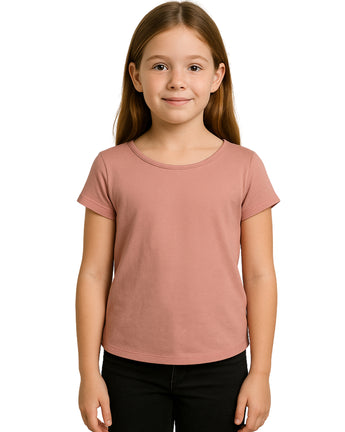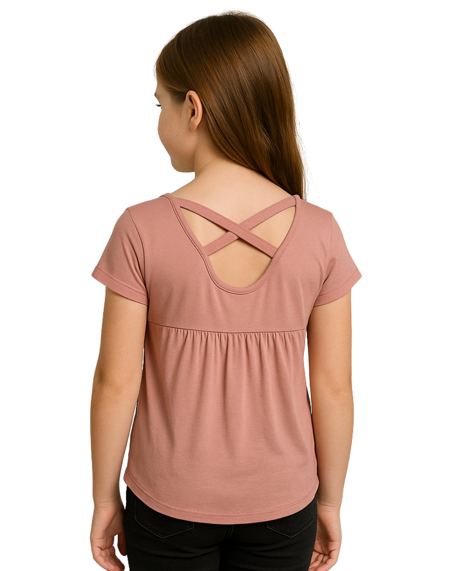 Girls, Short Sleeve, Round Neck, Back X Strap, Soft, Basic, 95% Polyester, 5% Spandex