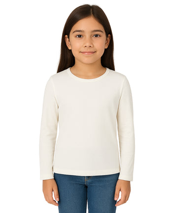 Girls, Long Sleeve, Crew Neck, Soft, Logo, Casual, 100% Cotton