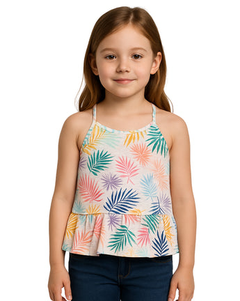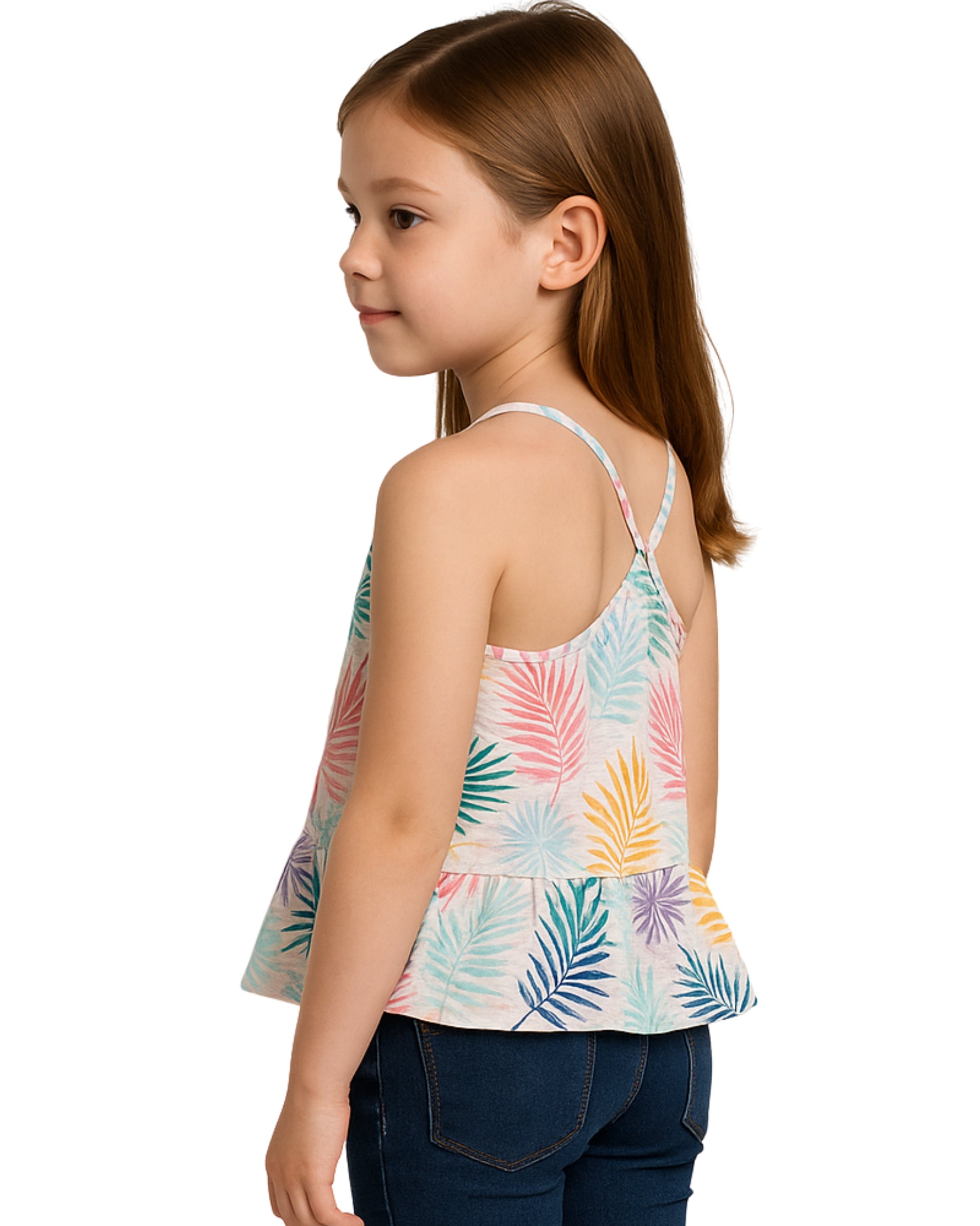 Kids, Girls, Sleeveless, Ruffle, Graphics, Crew Neck, Easy To Wear, Comfort, 60% Coton, 40% Polyester