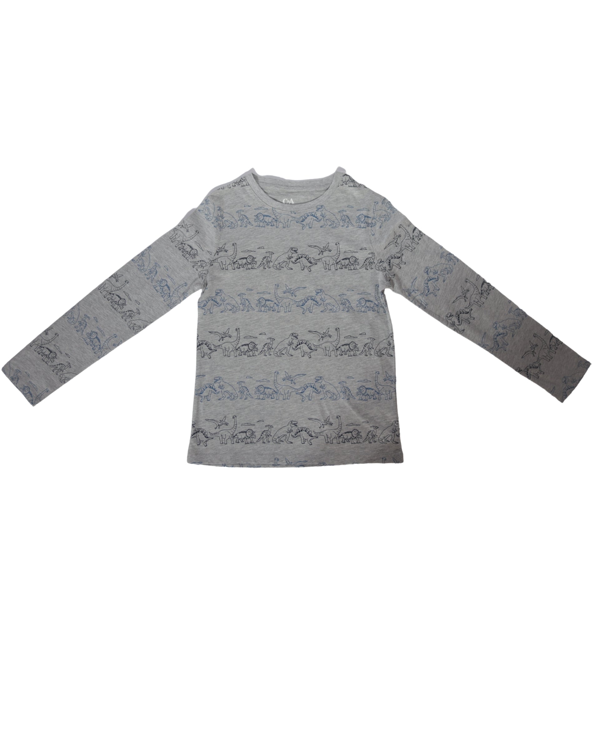 Boys, Long Sleeve, Crew Neck, Soft, Comfort, Animal Graphic, Casual, 95% Cotton, 5% Viscose