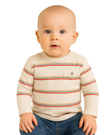 Nb, Long Sleeve, Crew Neck, Chest Pocket, Stripe, Comfort, Soft & Casual, 60% Cotton, 40% Recycled Polyester