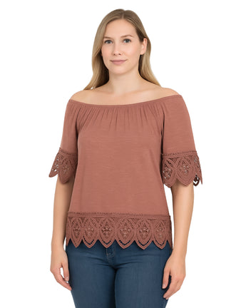 Casual, Short Sleeve, Round Neck, Lace Trim, 65% Polyester, 35% Rayon