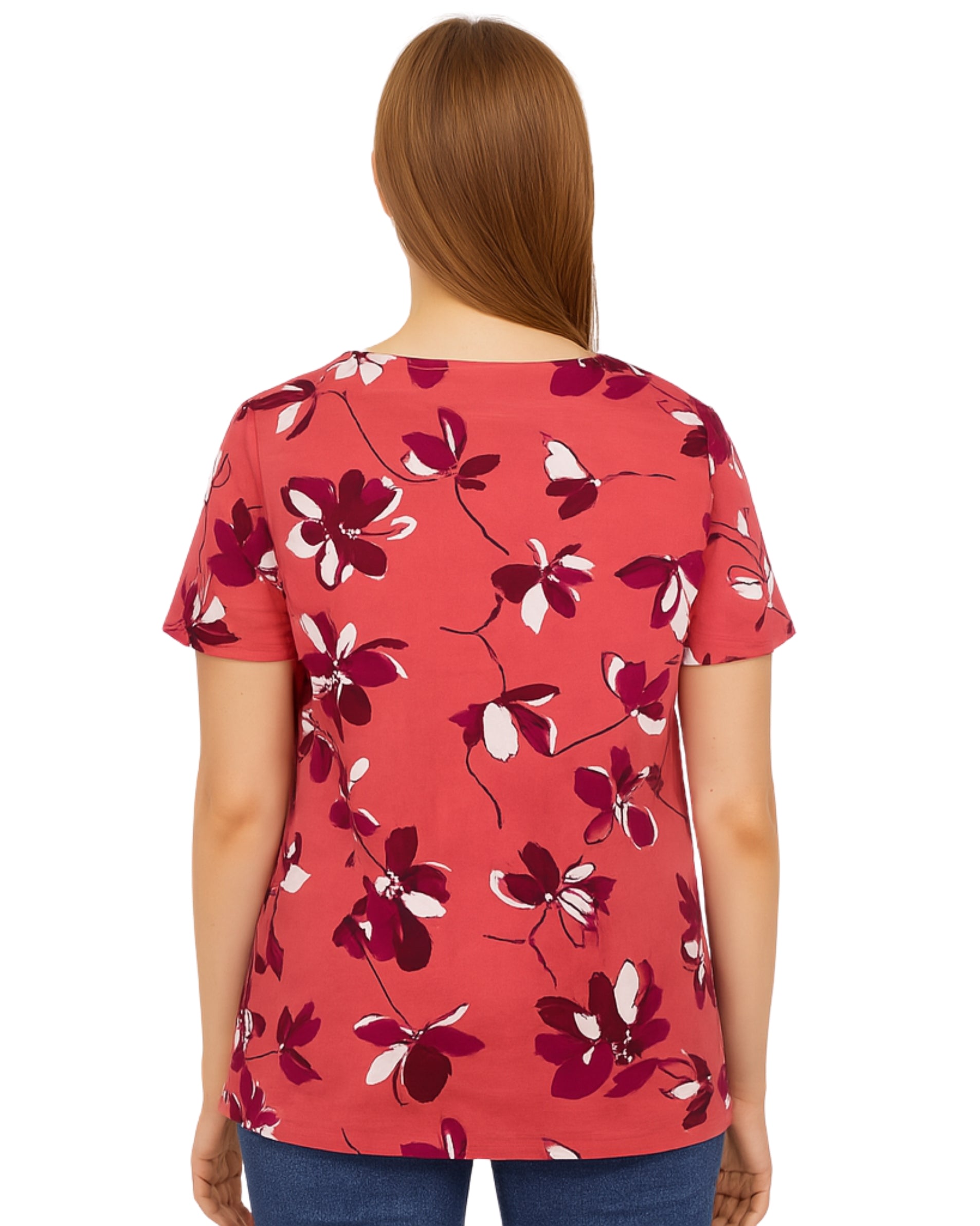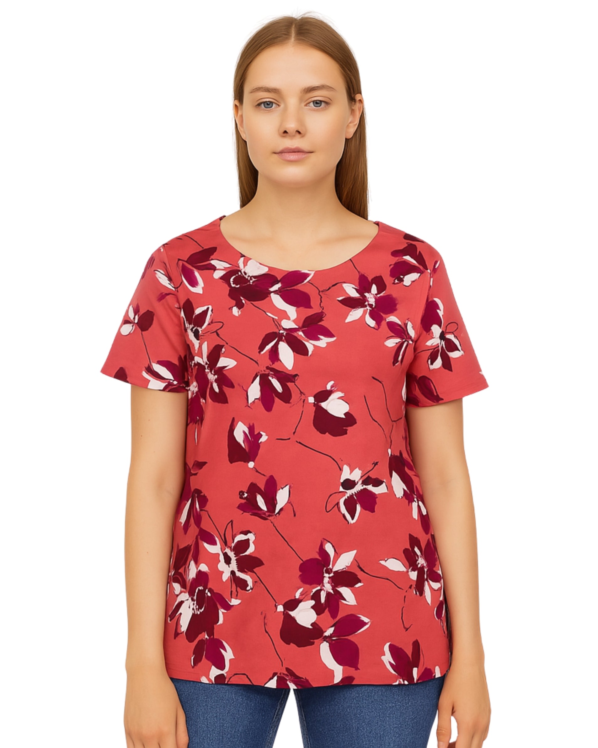 Round Neck, Short Sleeve, Floral, Casual, 100% Cotton