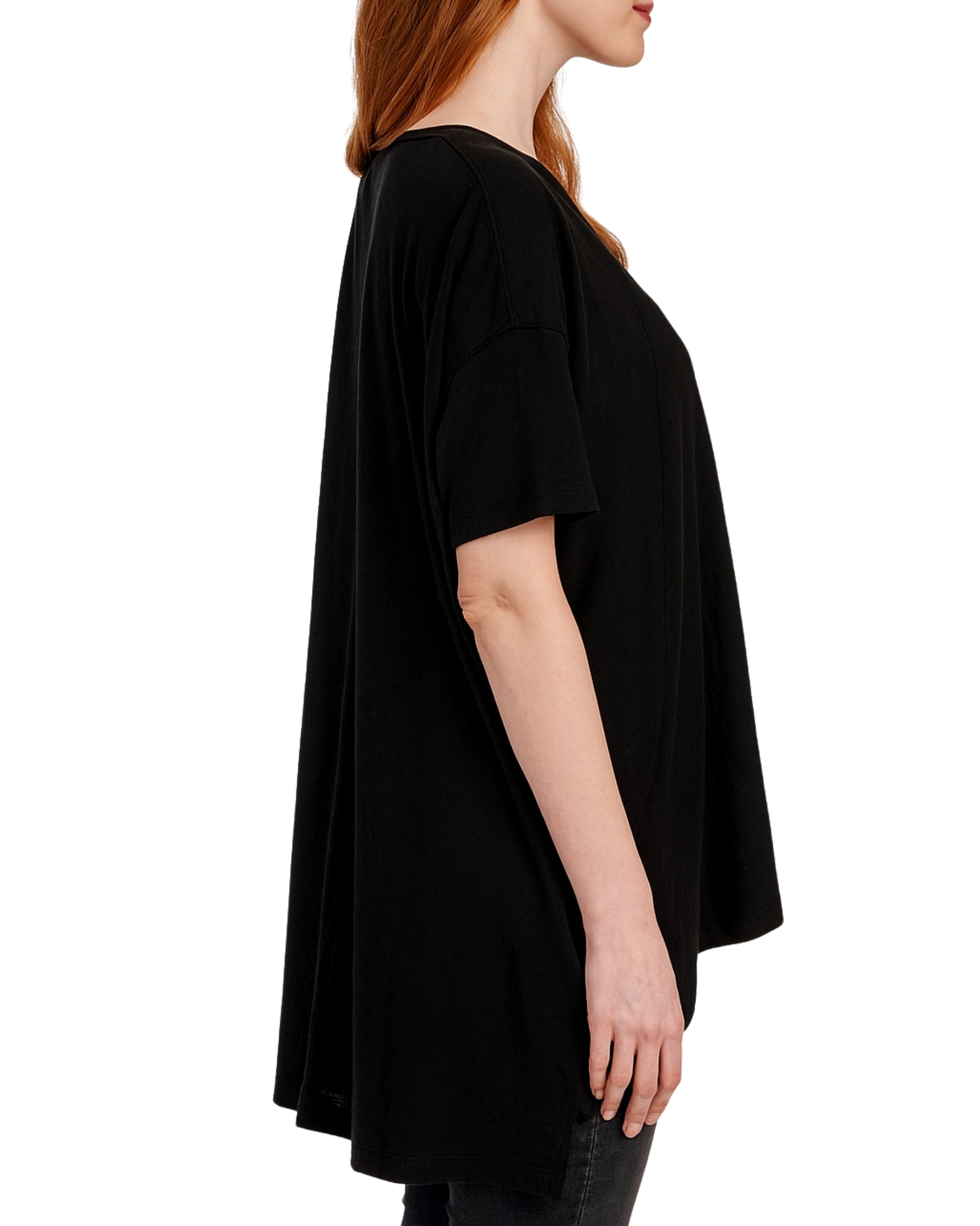 Women, Short Sleeve, Split V Neck, Comfort, Oversize Fit, Casual, 50% Polyester, 37% Cotton, 13% Viscose