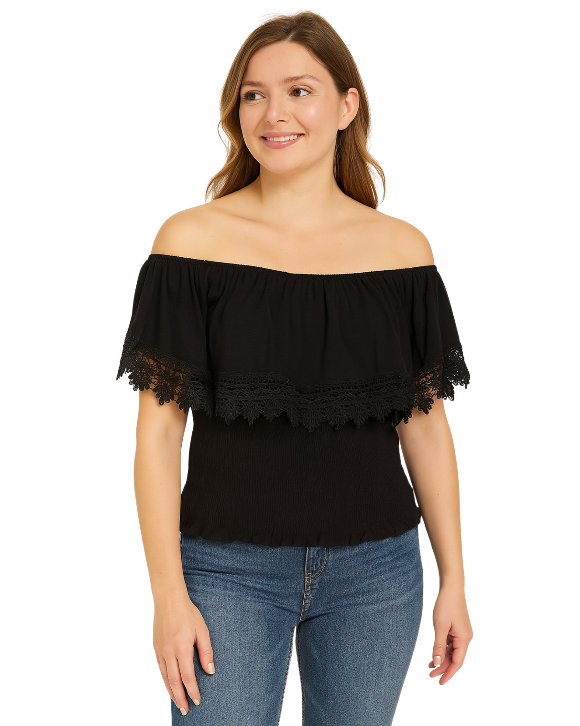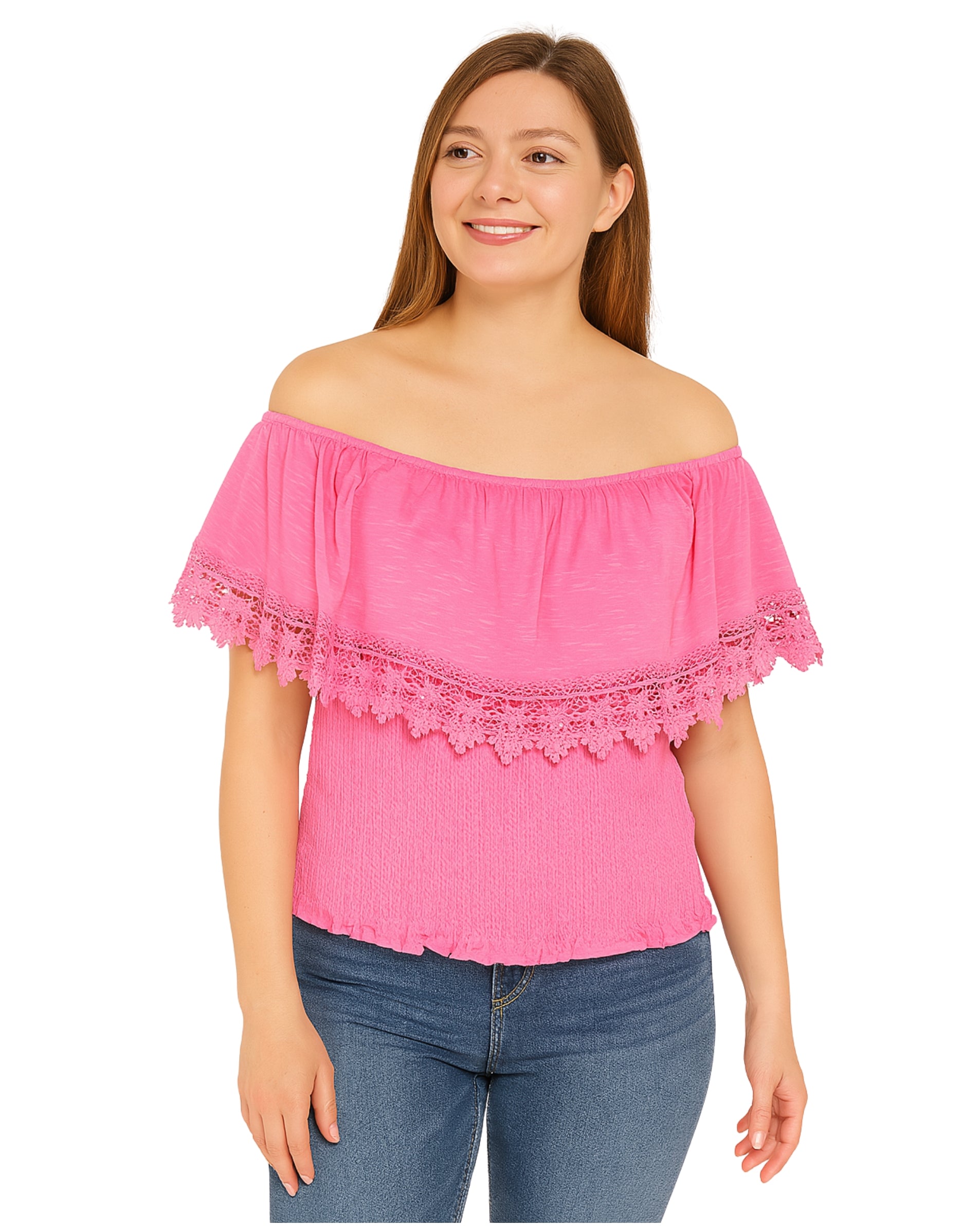 Ruffle Sleeve, Round Neck, Embroided, Casual, 65% Polyester, 35% Cotton