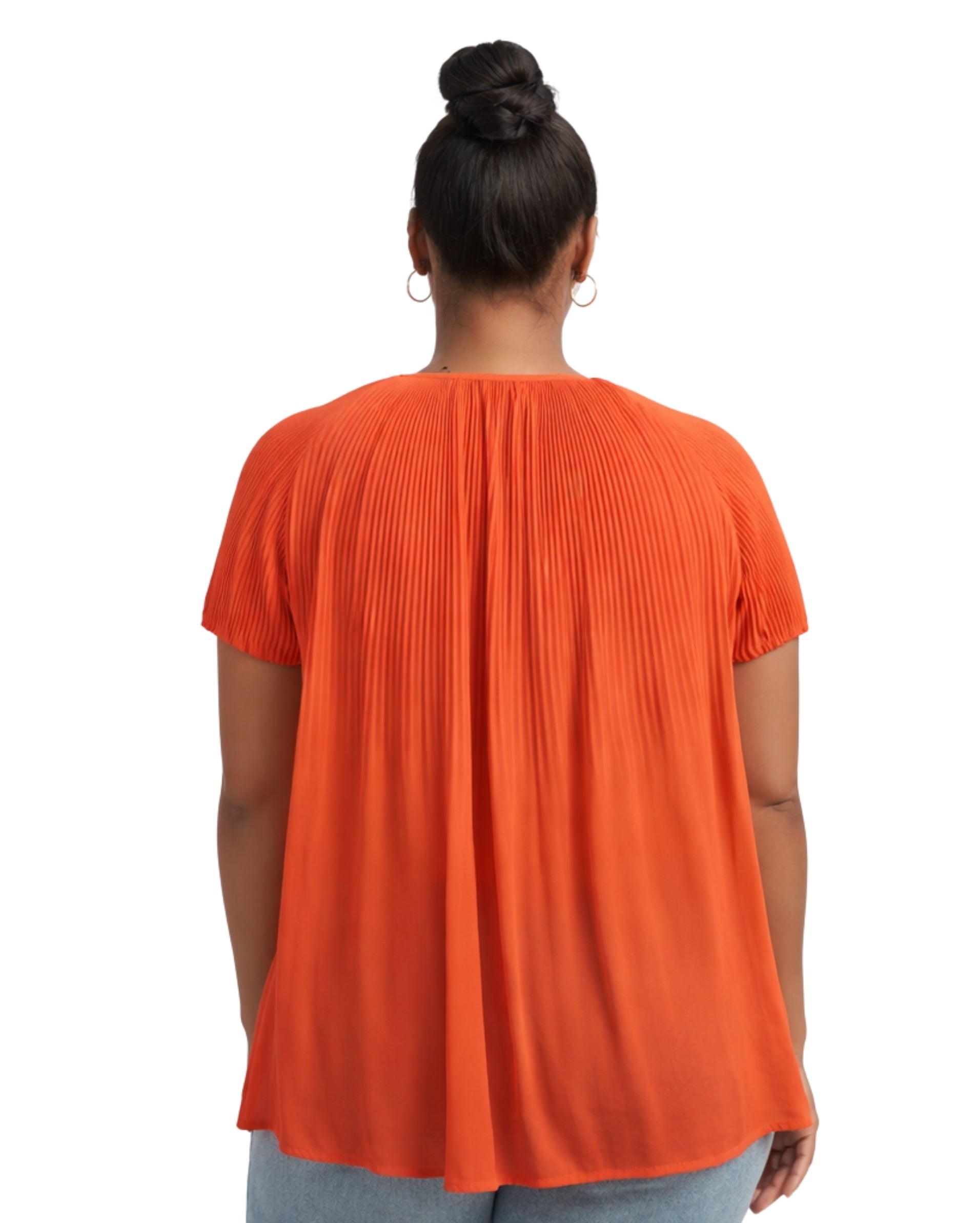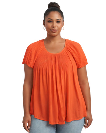 Women, Short Sleeve, Design, Soft, Comfortable, pleats extend from the shoulders and yoke area, flowing loosely down to a straight hem