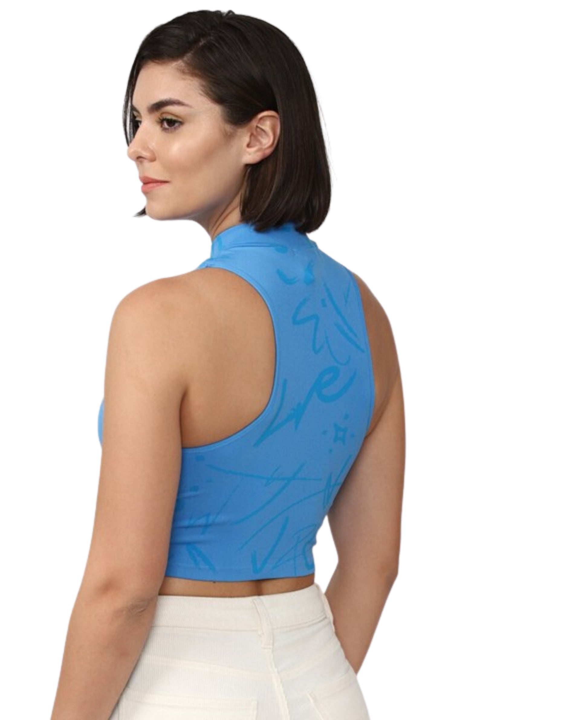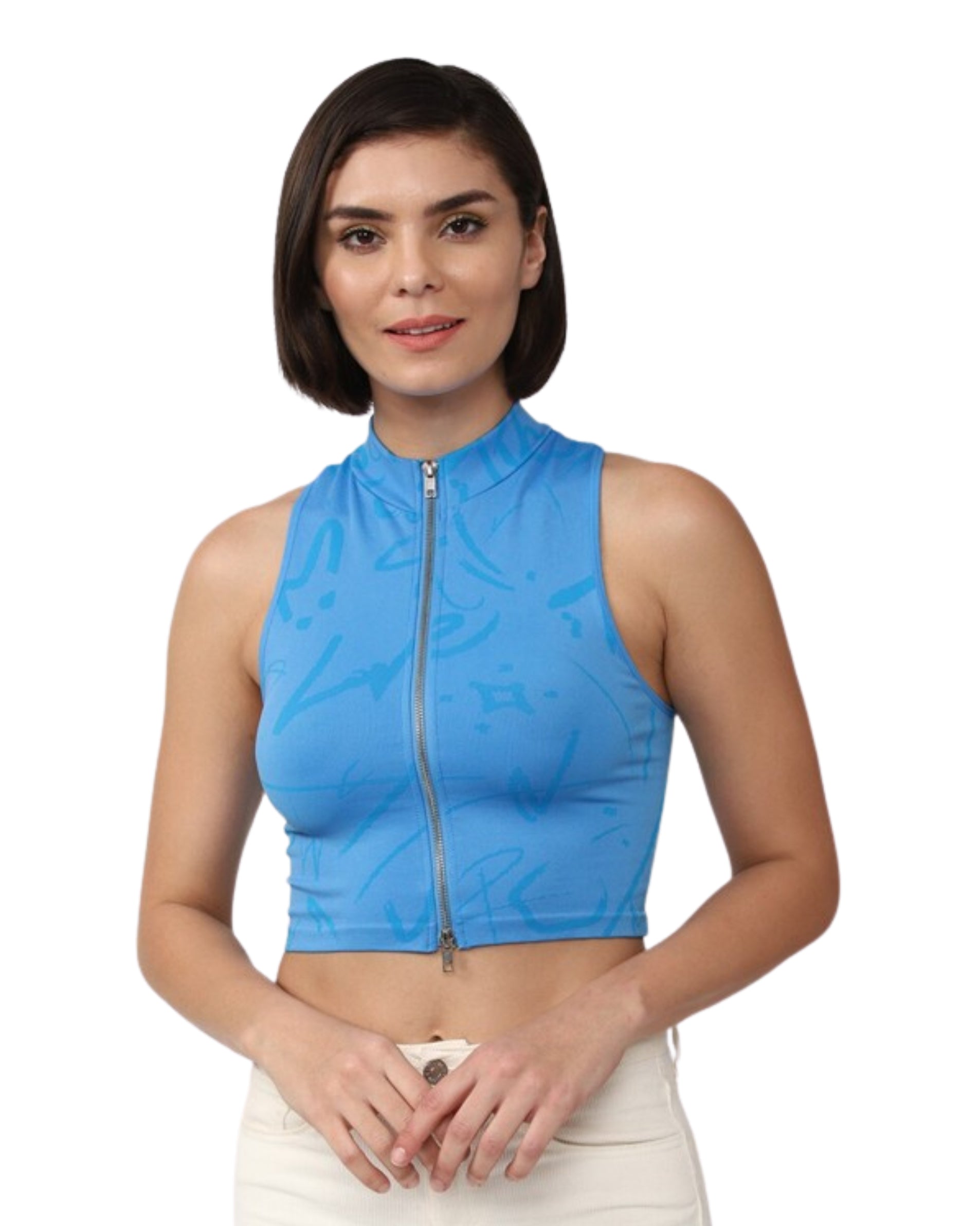 Women, Sleeveless, Zipper Closure, Crew Neck, Crop Regular, Abstract, Casual, 61% Nylon, 34% Polyester, 5% Spandex